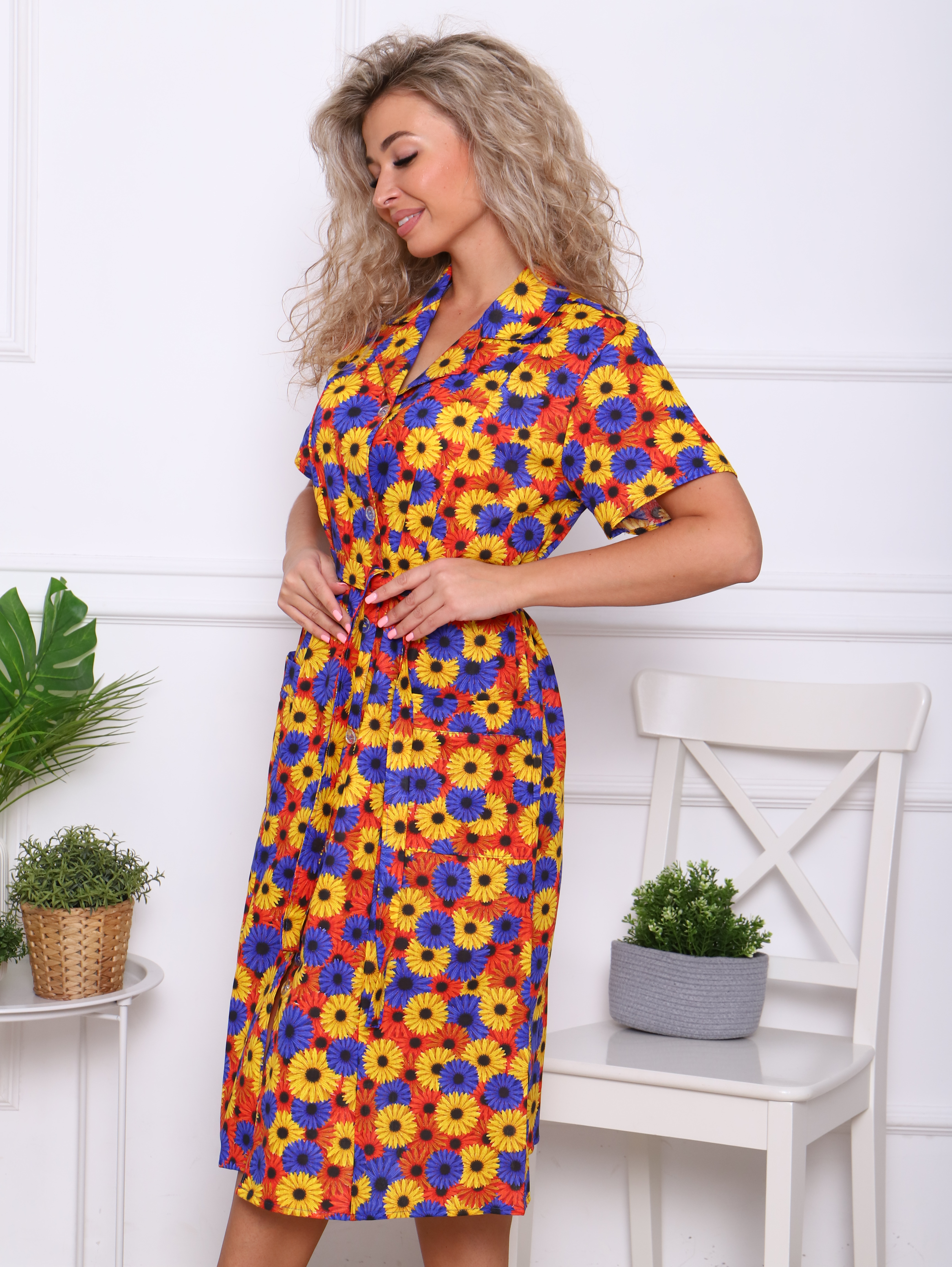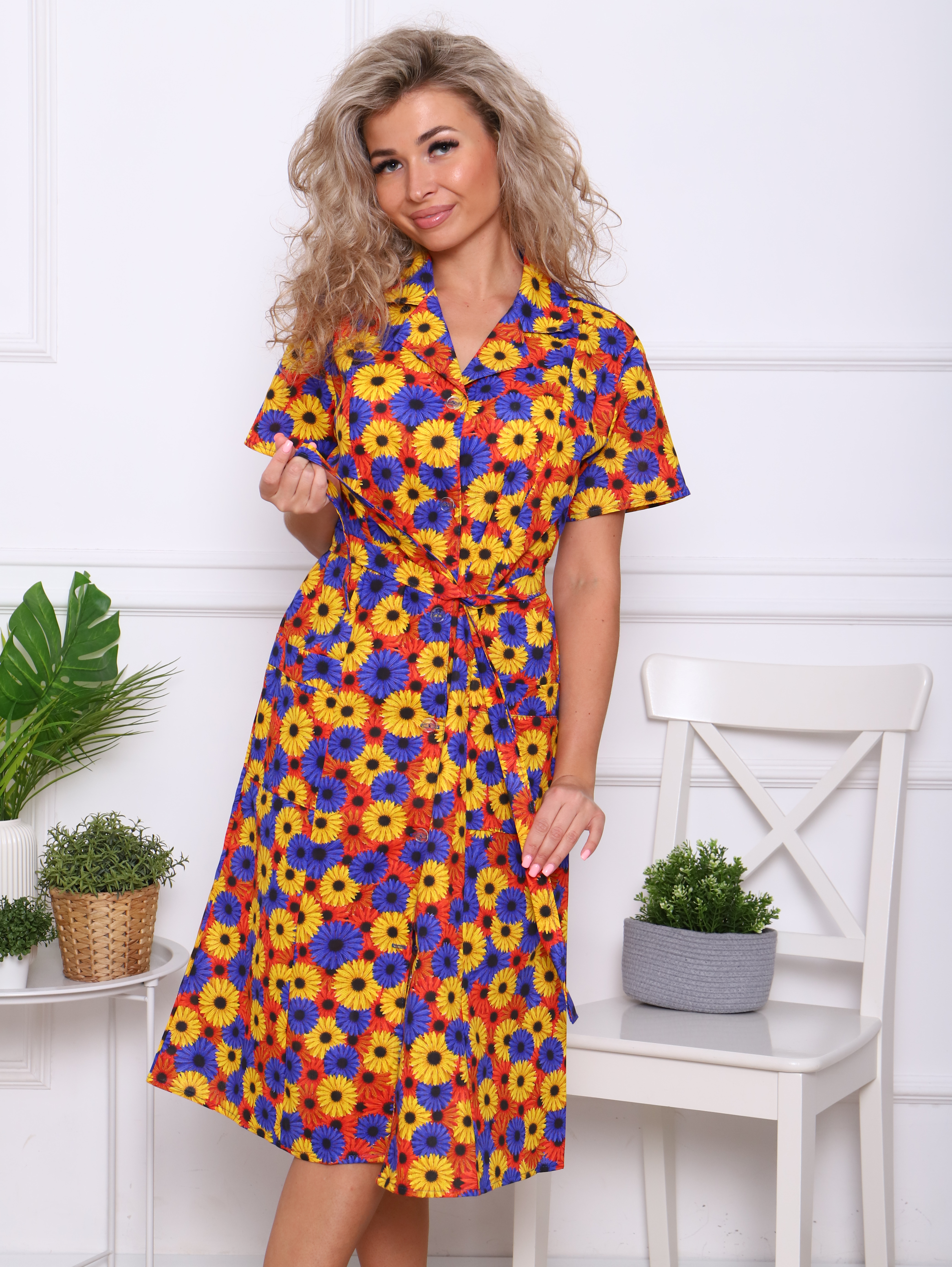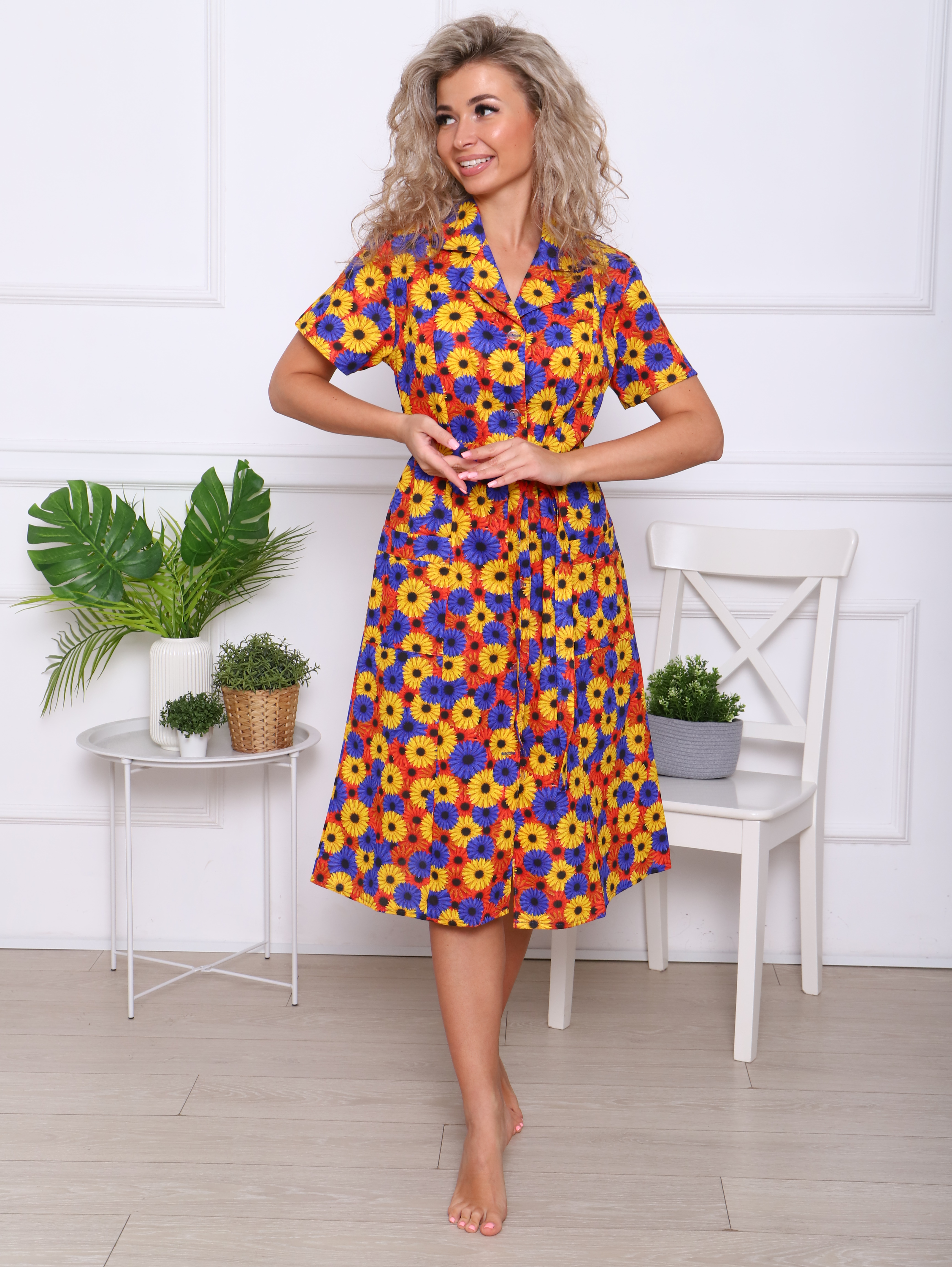 Женский халат из бязи на пуговицах Осенние георгины