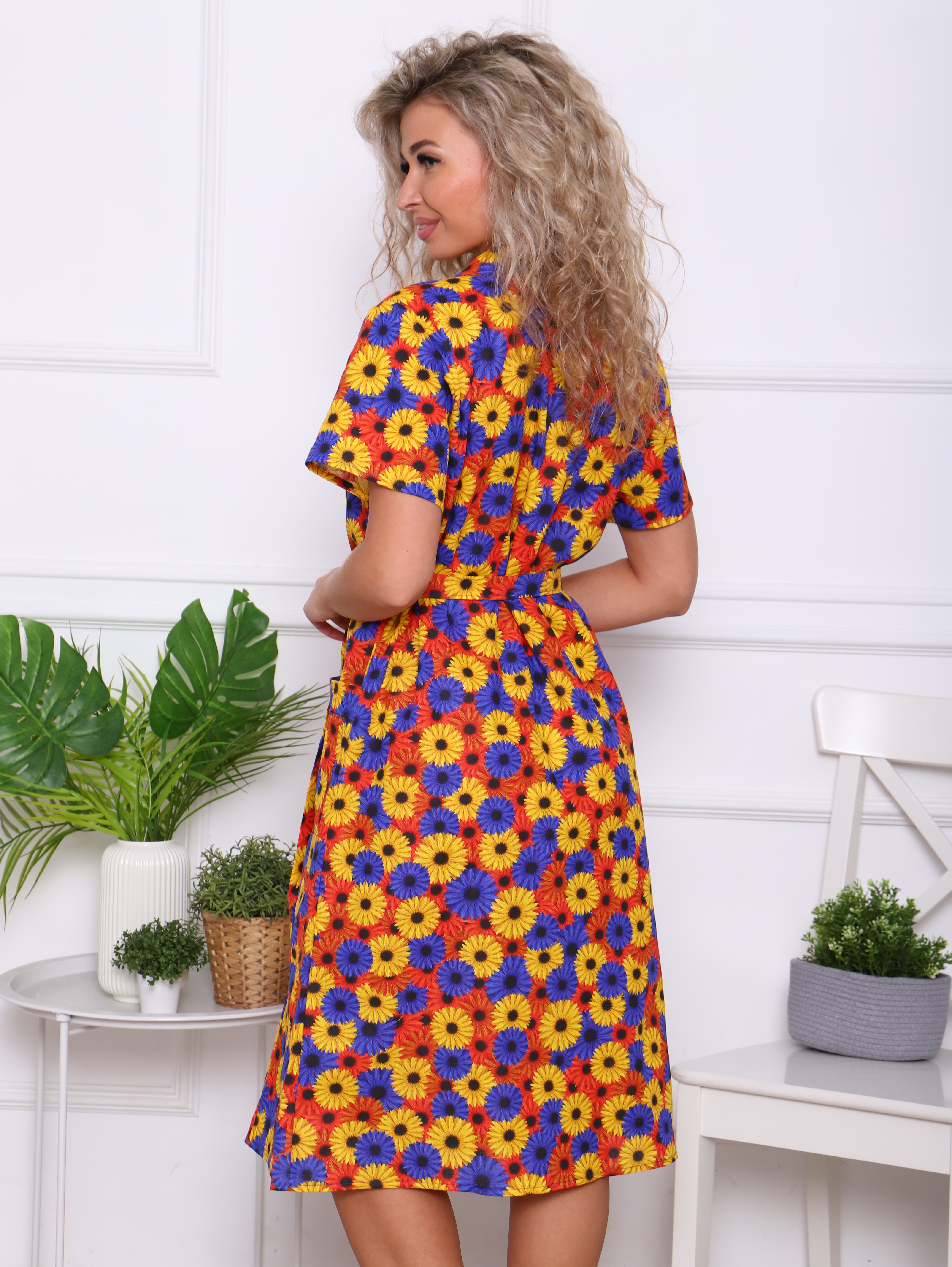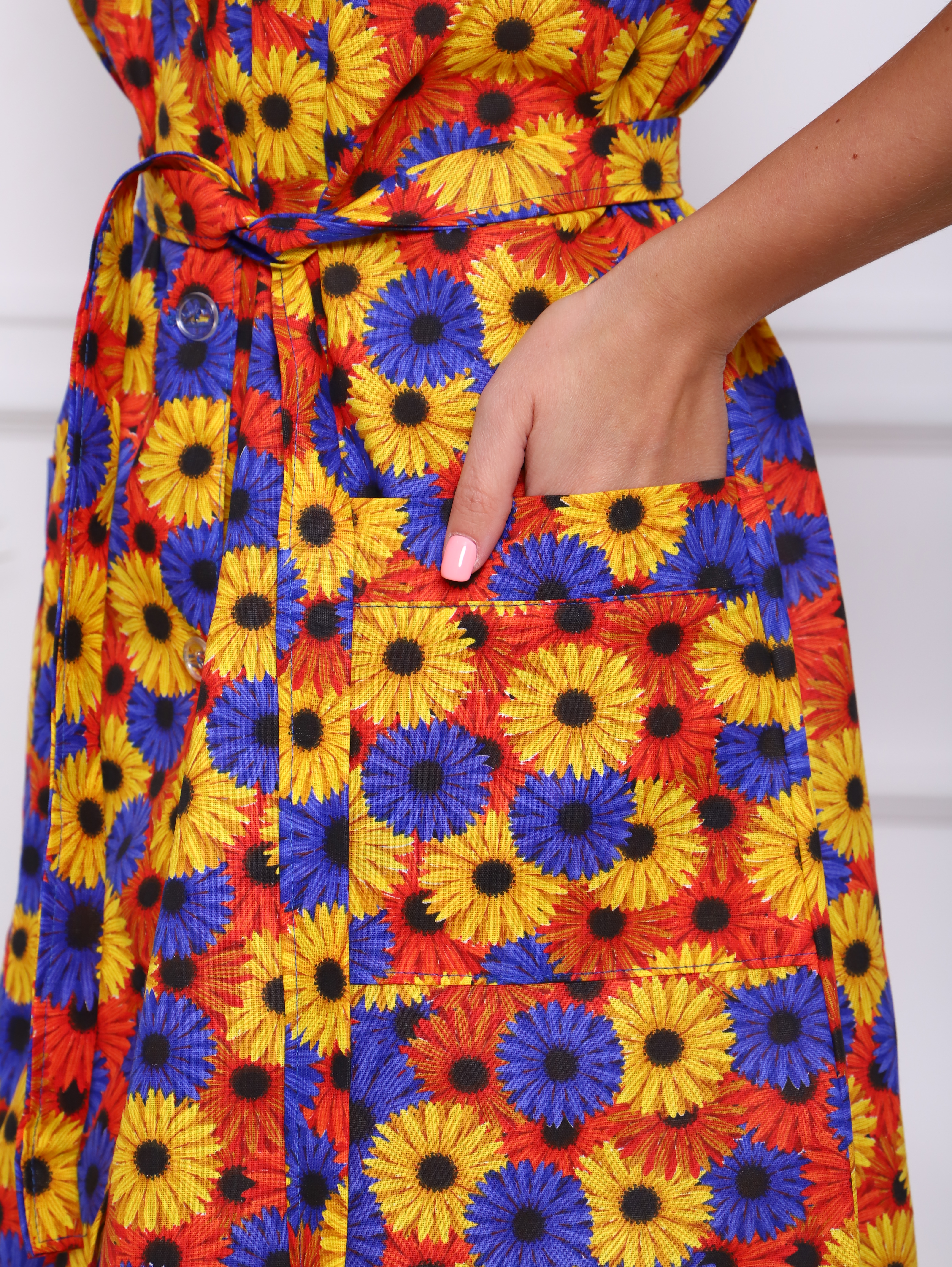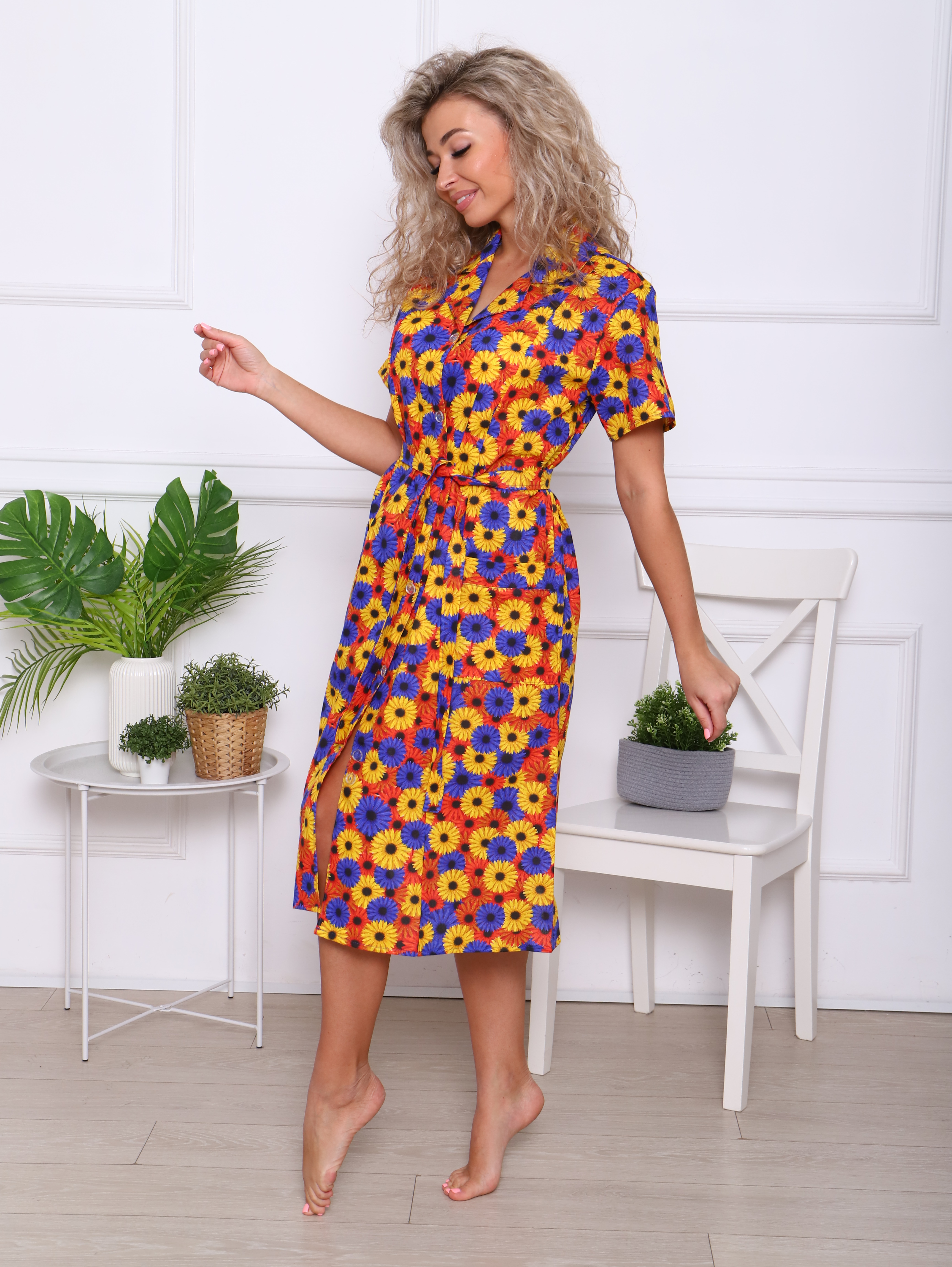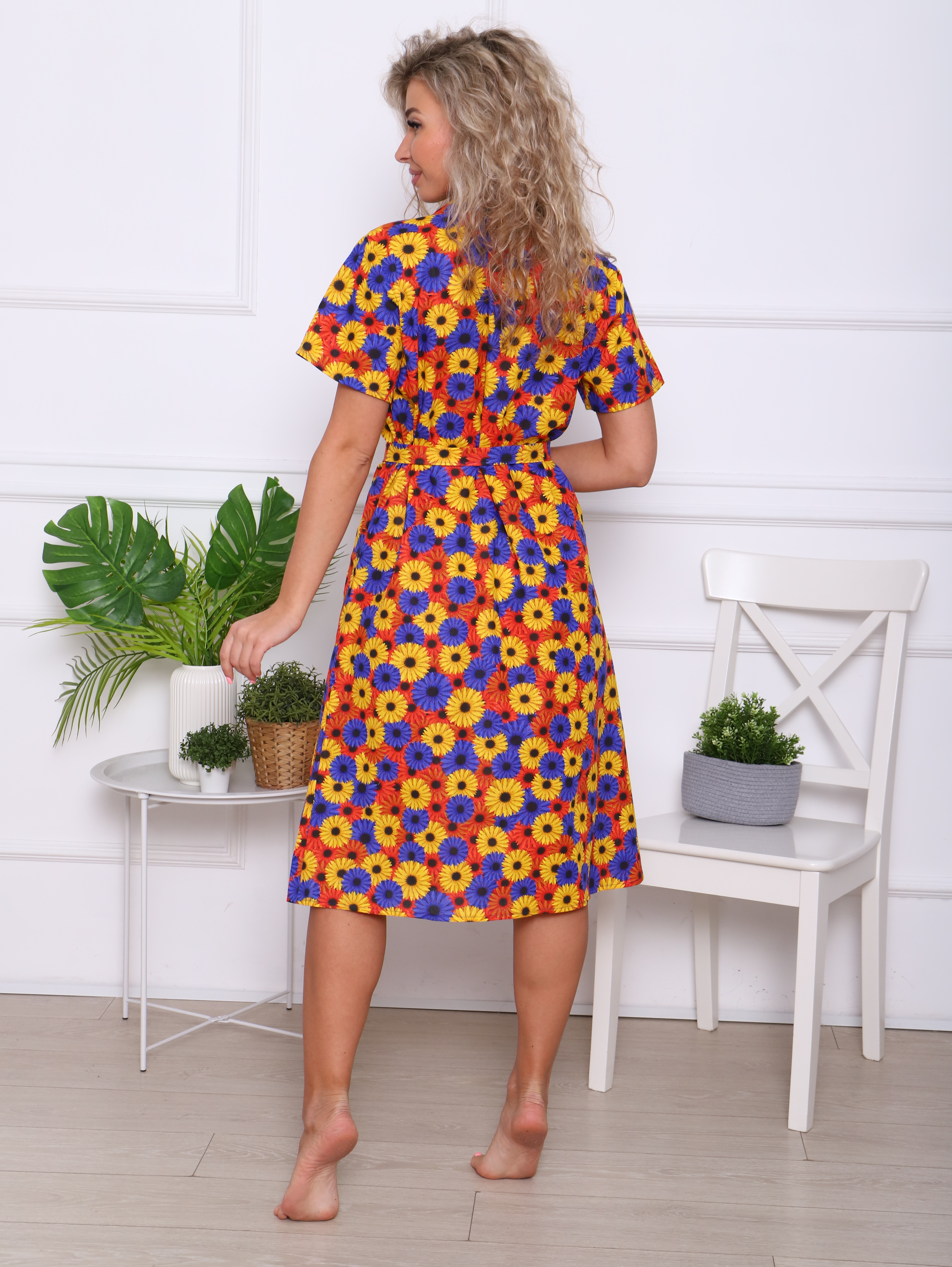 Женский халат из бязи на пуговицах Осенние георгины