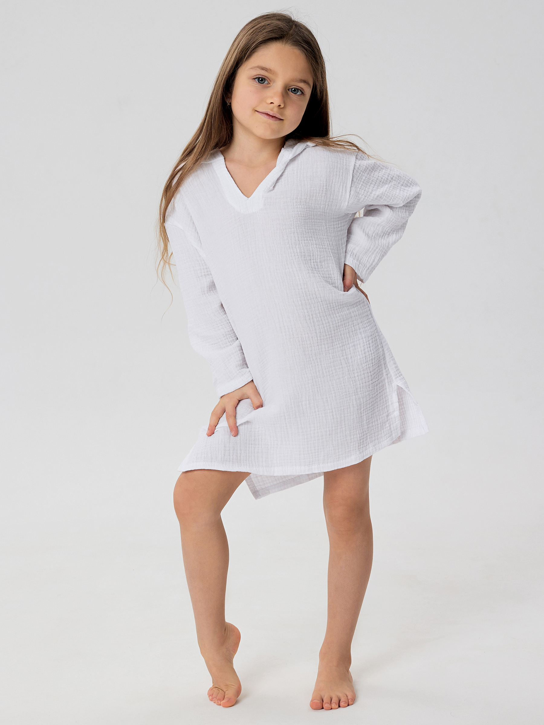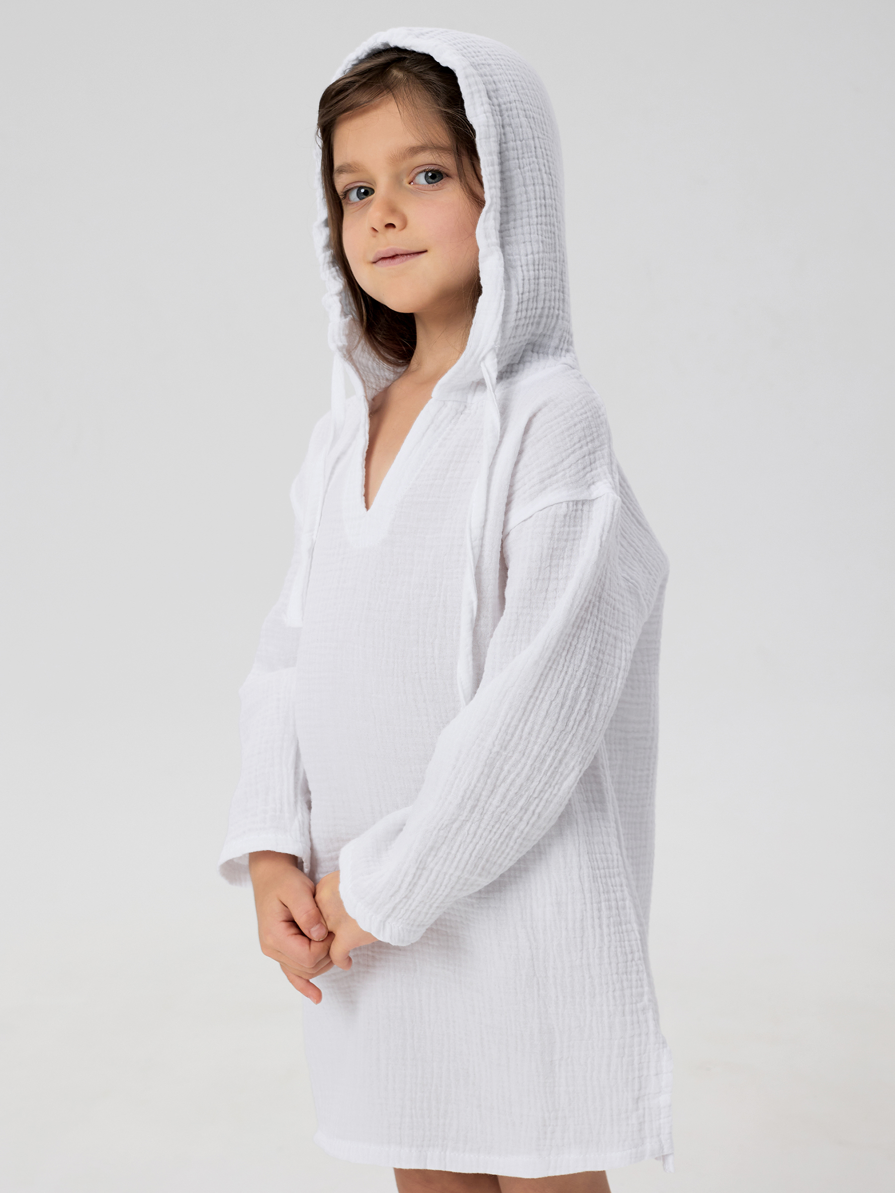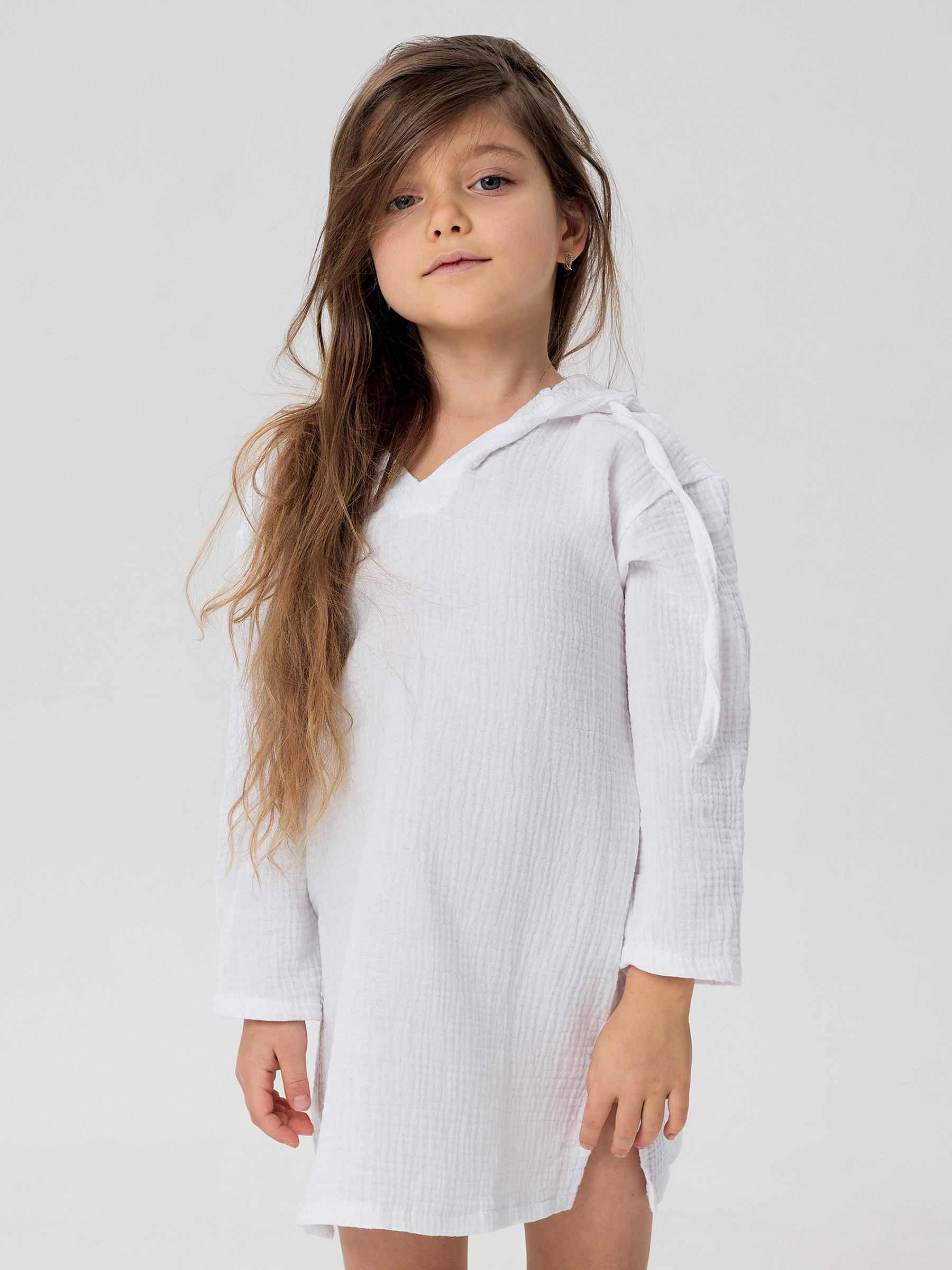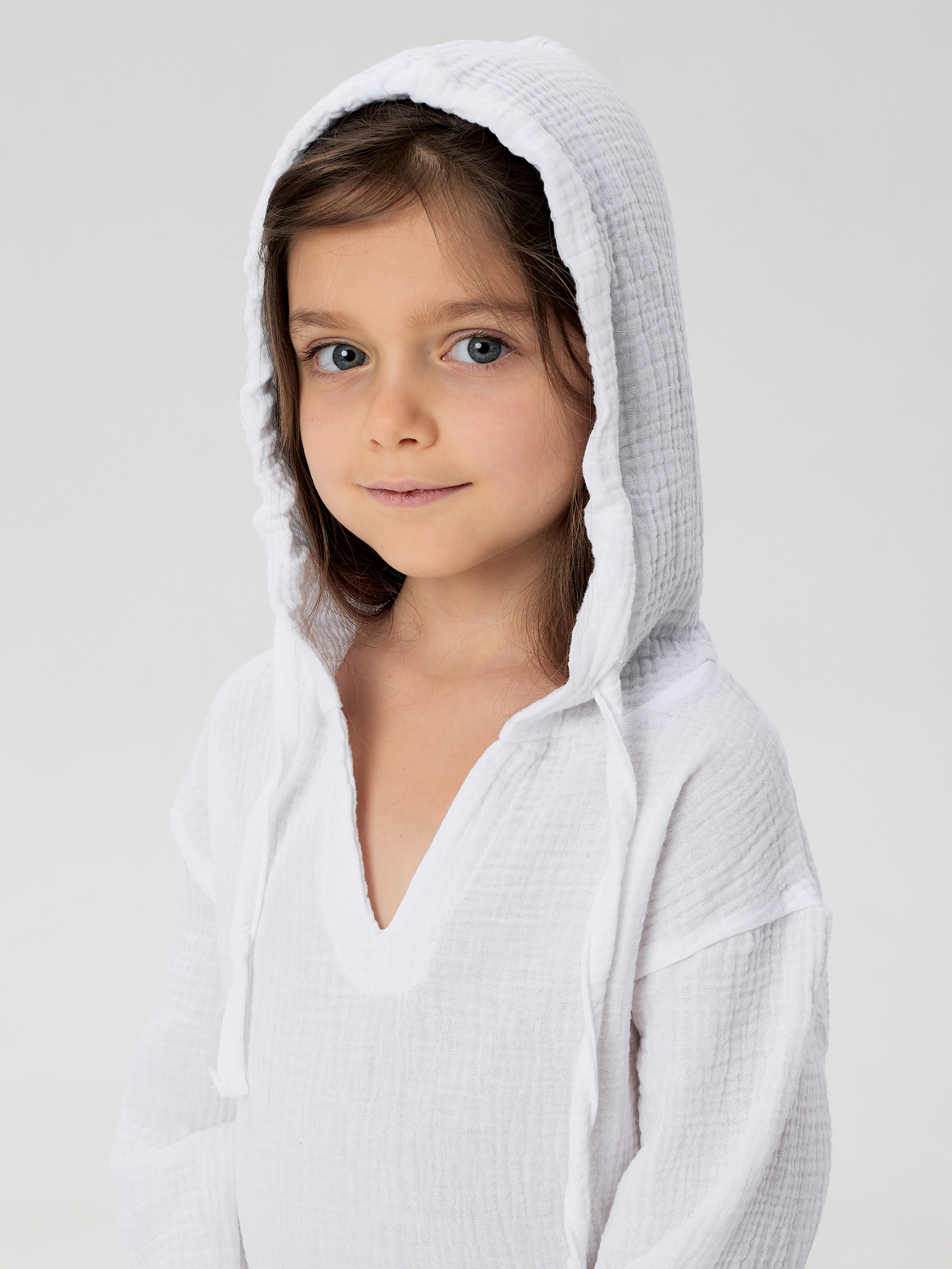 Детская туника из муслинового материала - идеальная одежда для активных детей. Туника для пляжа удлиненная имеет свободный крой, что позволяет не стеснять движения вашего ребенка, а ветер и солнце не будут мешать так как ткань воздухопроницаемая и выполнена из натуральной хлопковой ткани. Капюшон защитит голову от солнца, а шнурок на капюшоне позволит затянуть либо завязать его, чтобы он не скатывался во время купания или игр. Туника пляжная гипоаллергенная, стильная и не деформируется после стирки - ткань прочная износостойкая и прослужит долго. Благодаря широкому размерному ряду подходит и для малышей, и для подростков.