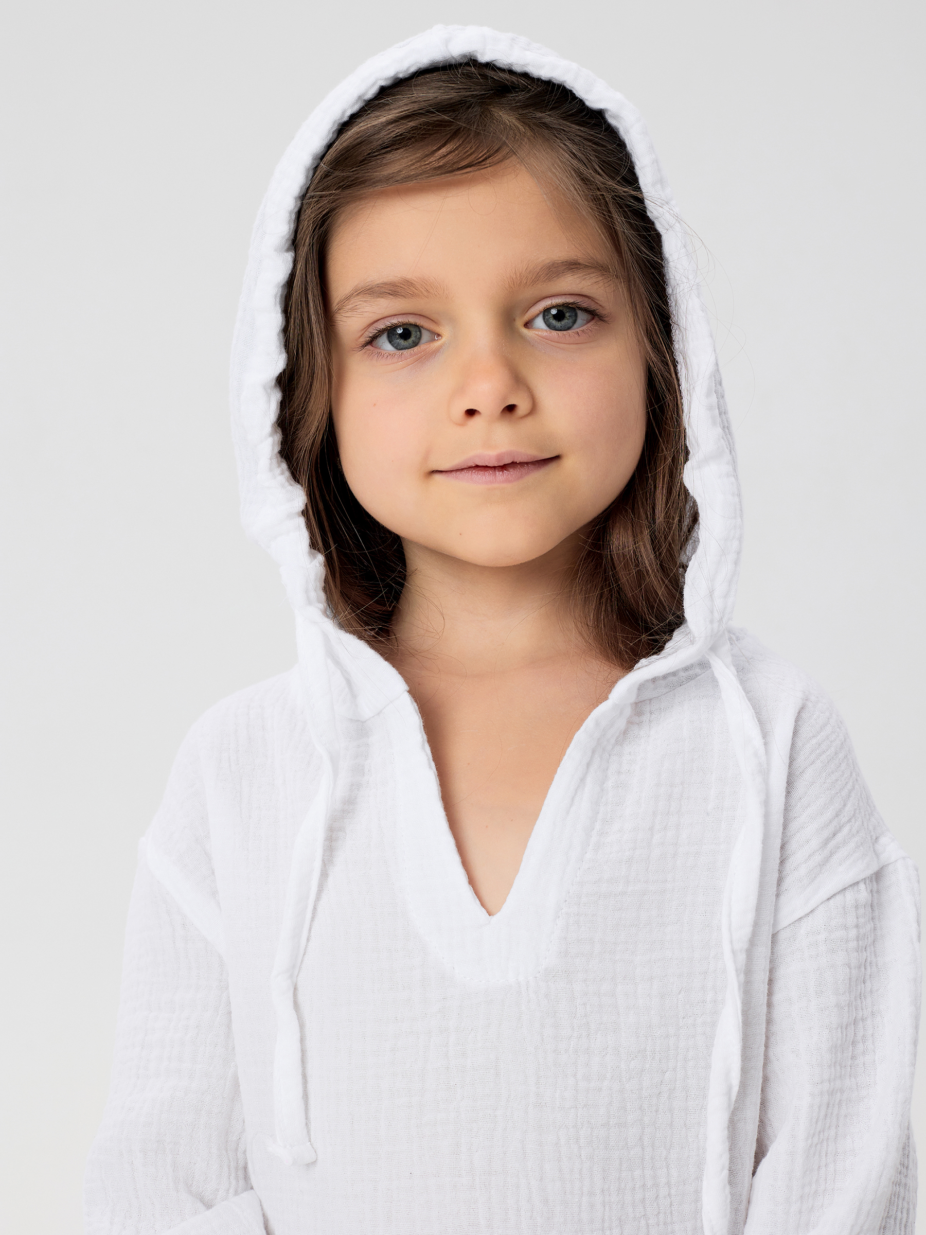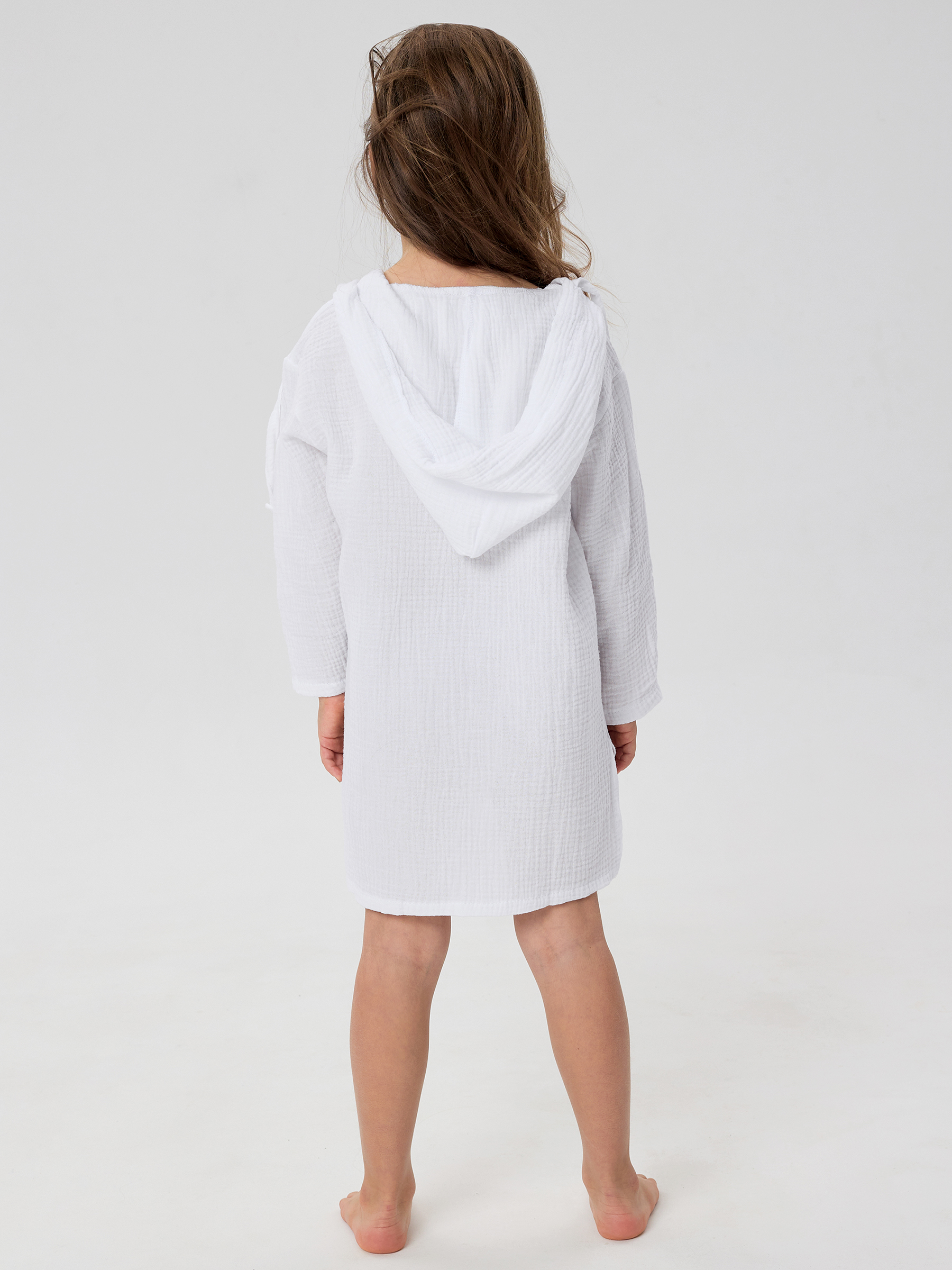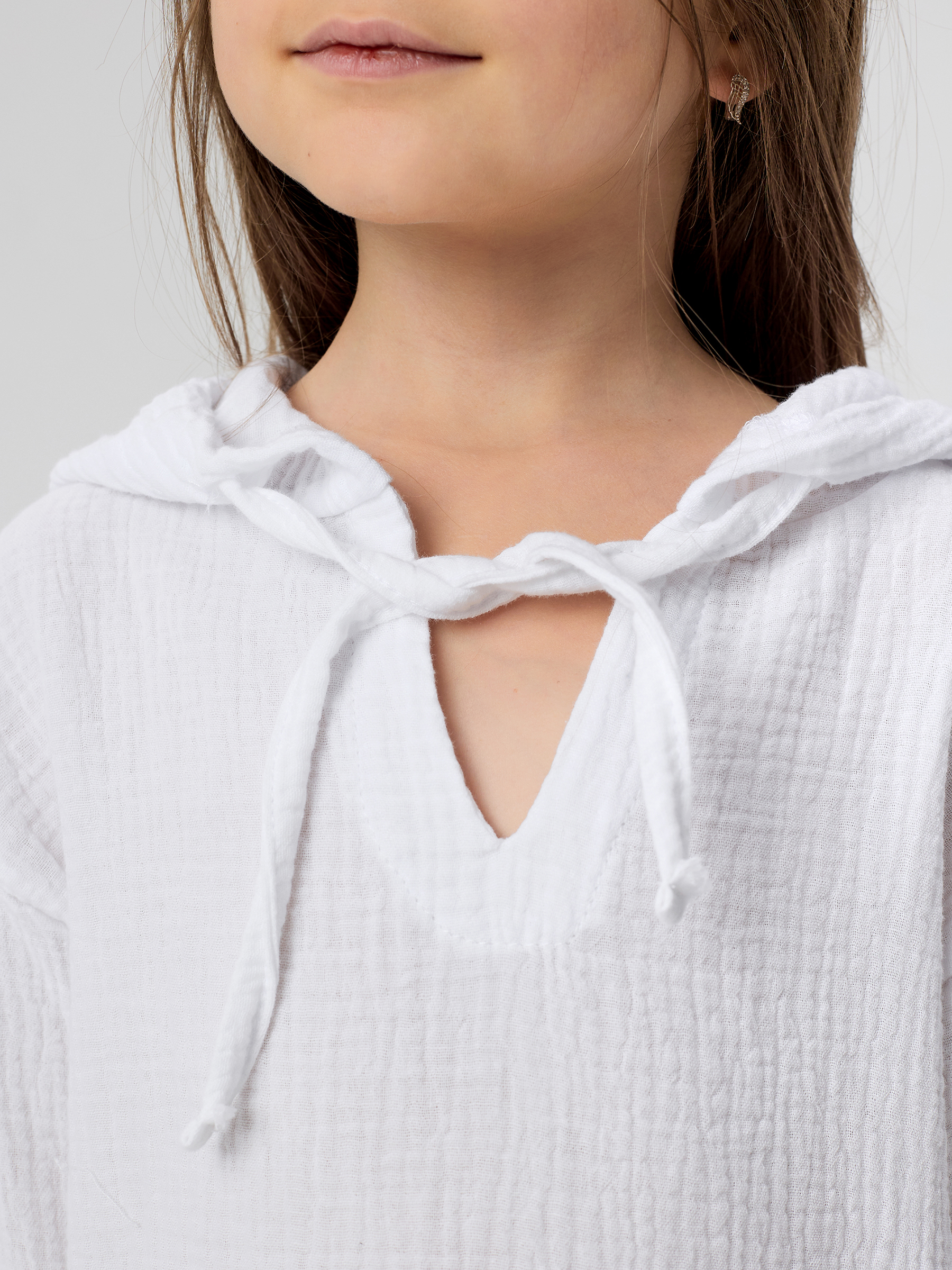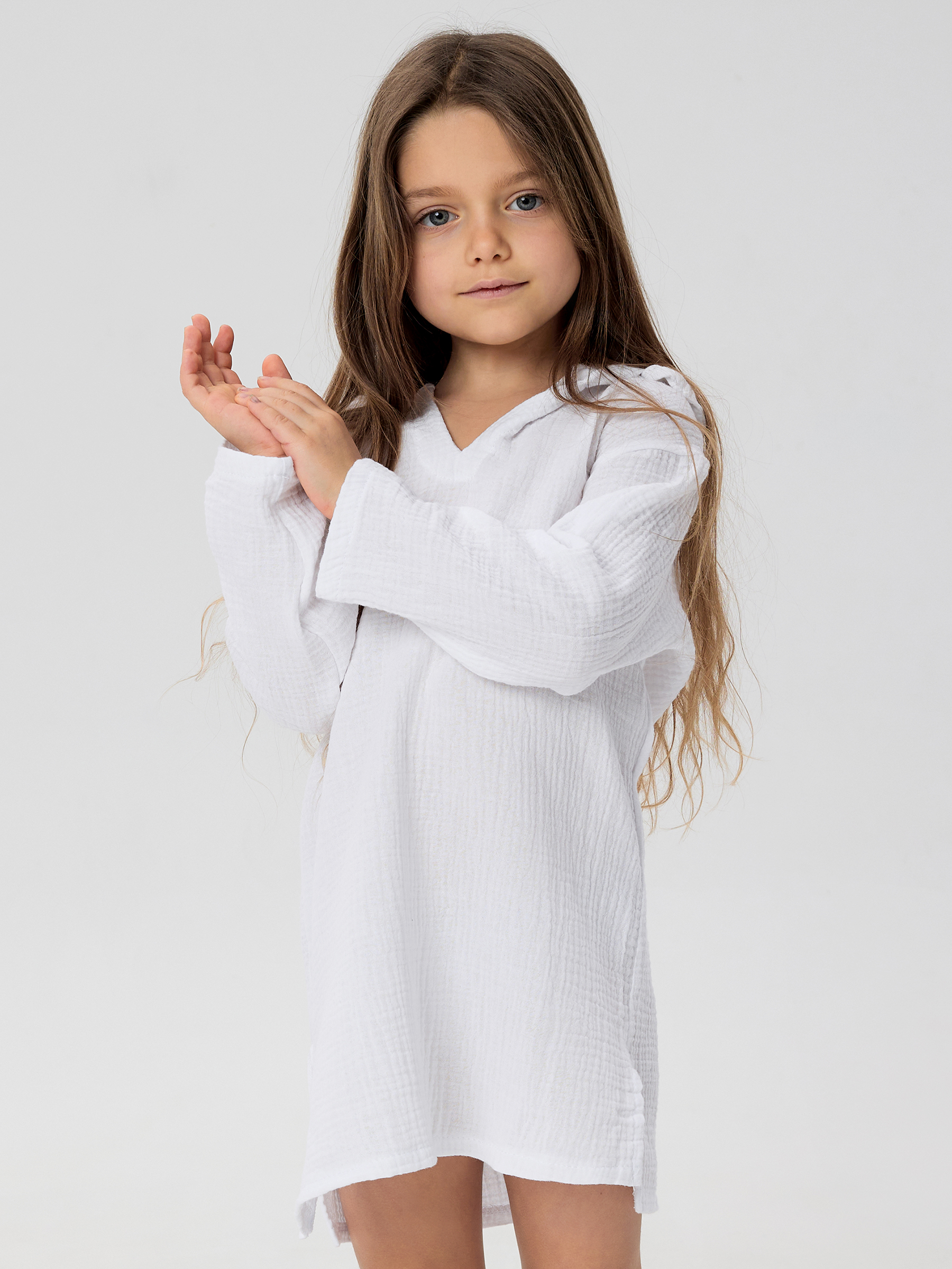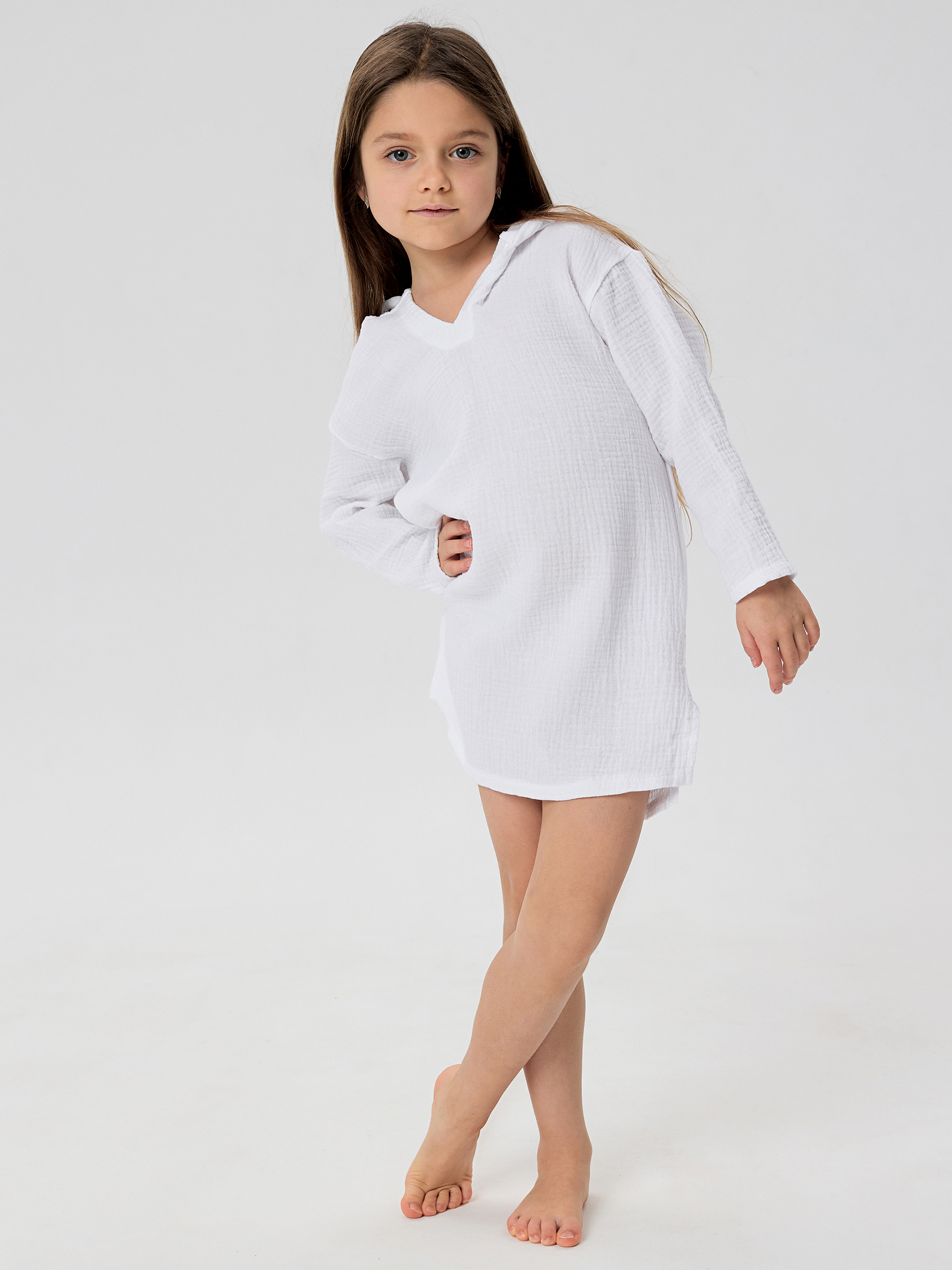 Детская туника из муслинового материала - идеальная одежда для активных детей. Туника для пляжа удлиненная имеет свободный крой, что позволяет не стеснять движения вашего ребенка, а ветер и солнце не будут мешать так как ткань воздухопроницаемая и выполнена из натуральной хлопковой ткани. Капюшон защитит голову от солнца, а шнурок на капюшоне позволит затянуть либо завязать его, чтобы он не скатывался во время купания или игр. Туника пляжная гипоаллергенная, стильная и не деформируется после стирки - ткань прочная износостойкая и прослужит долго. Благодаря широкому размерному ряду подходит и для малышей, и для подростков.