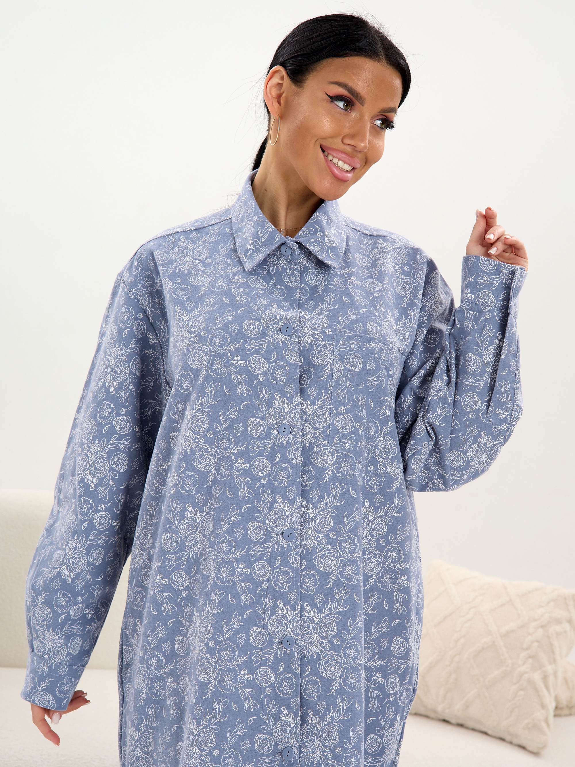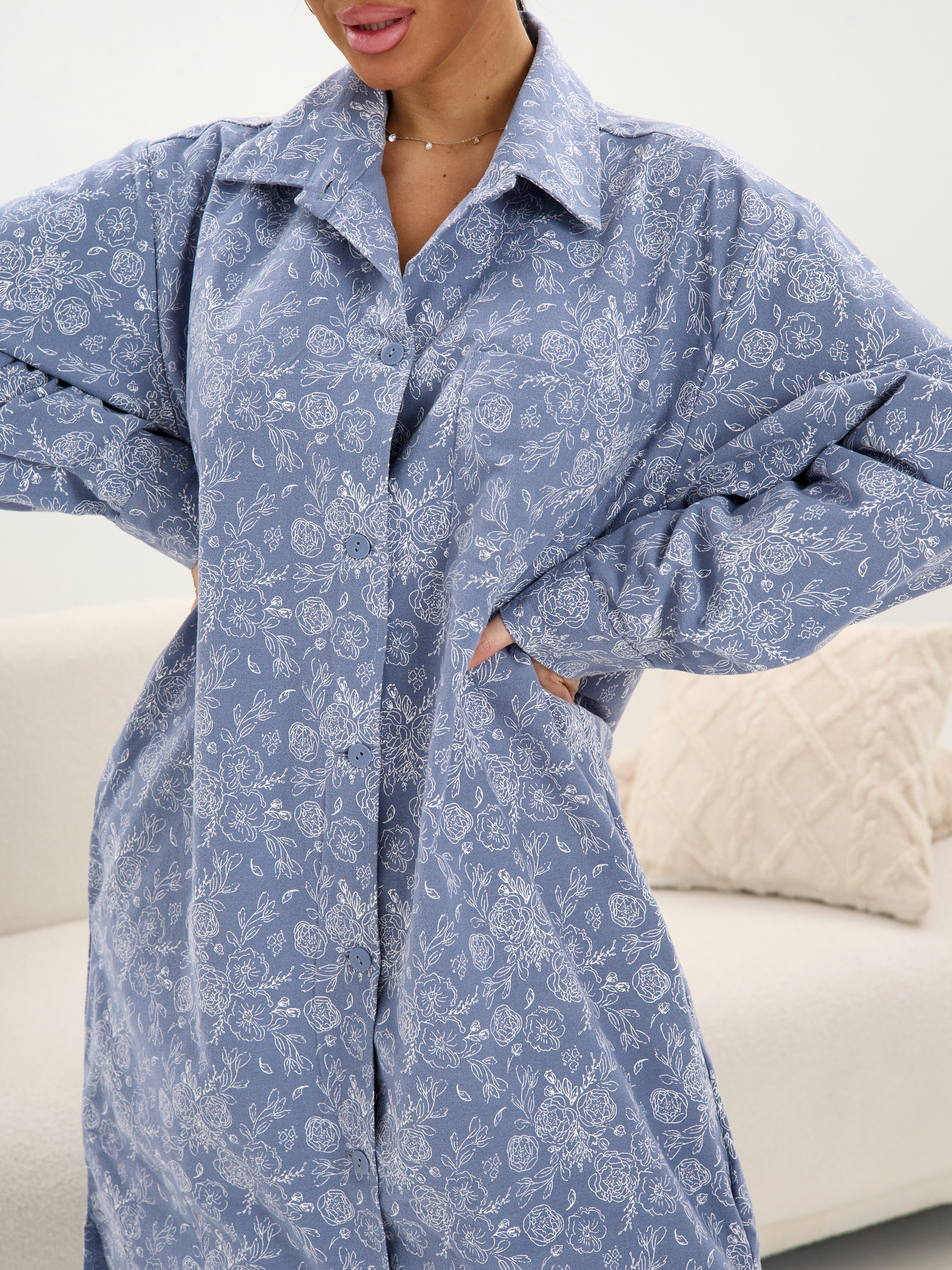 Халат - рубашка изготовлен из 100% хлопка.