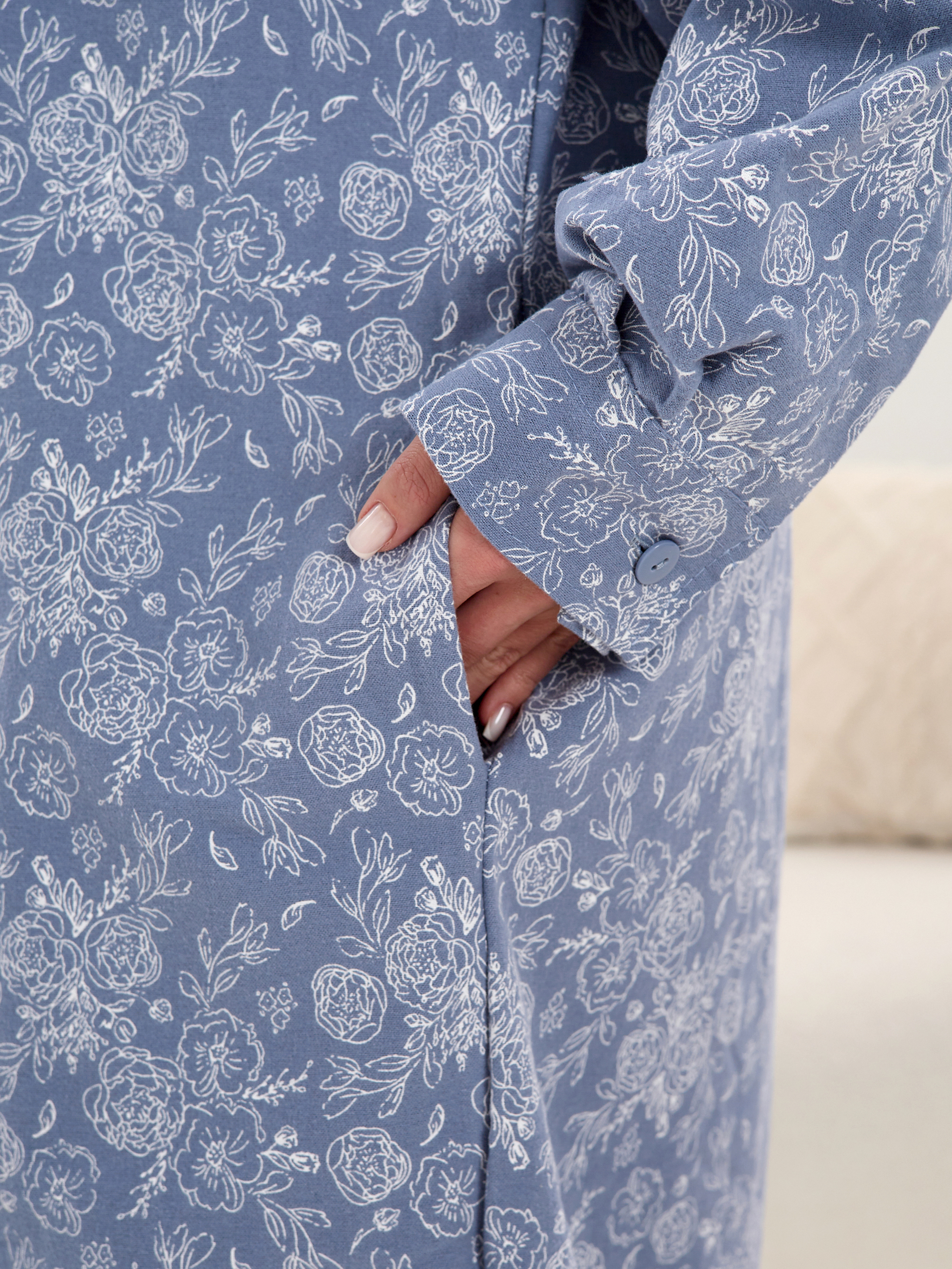 Этот халат с длинным рукавом и манжетами с пуговицами идеально подходит для холодных зимних дней, обеспечивая тепло и комфорт.