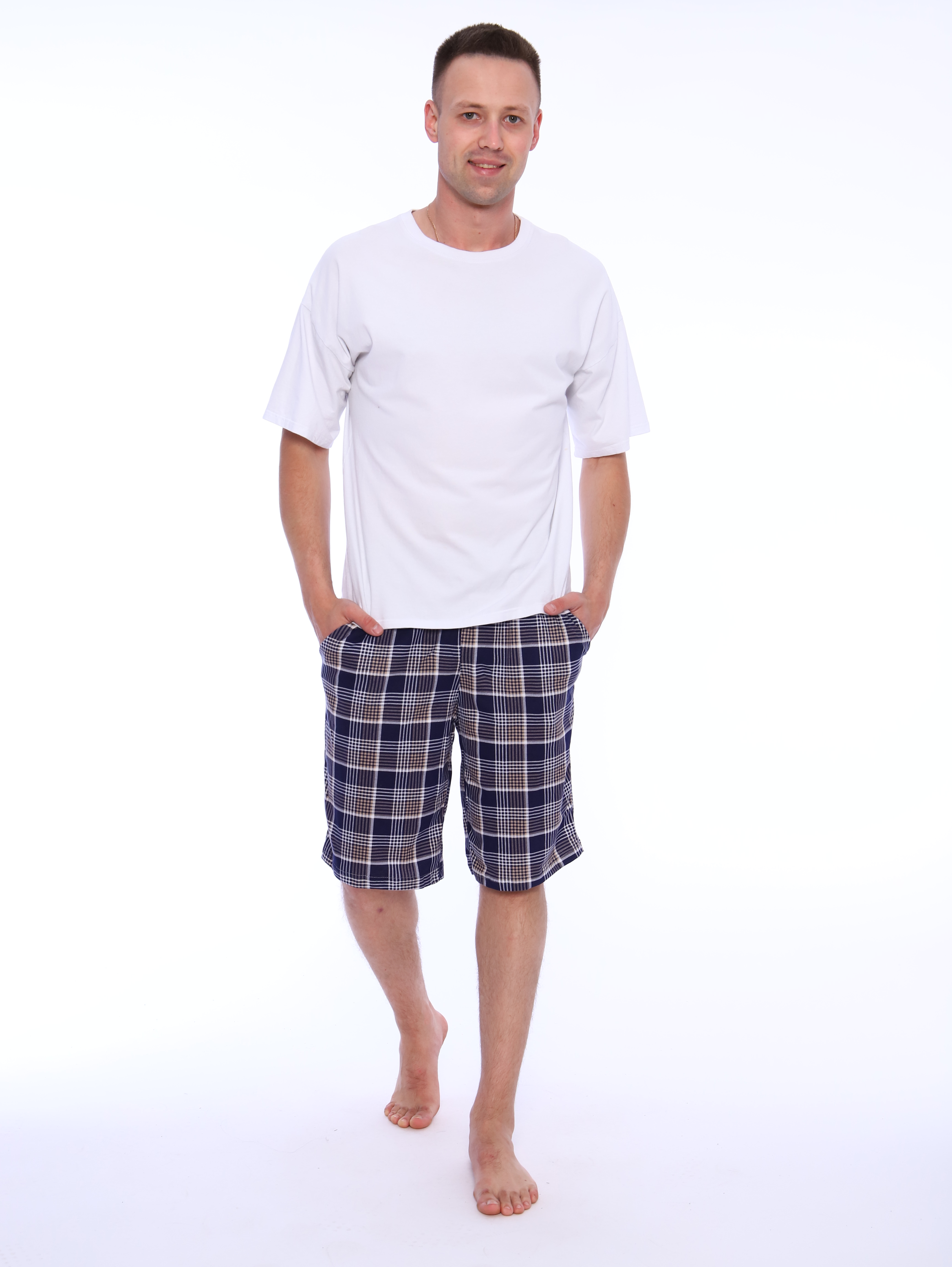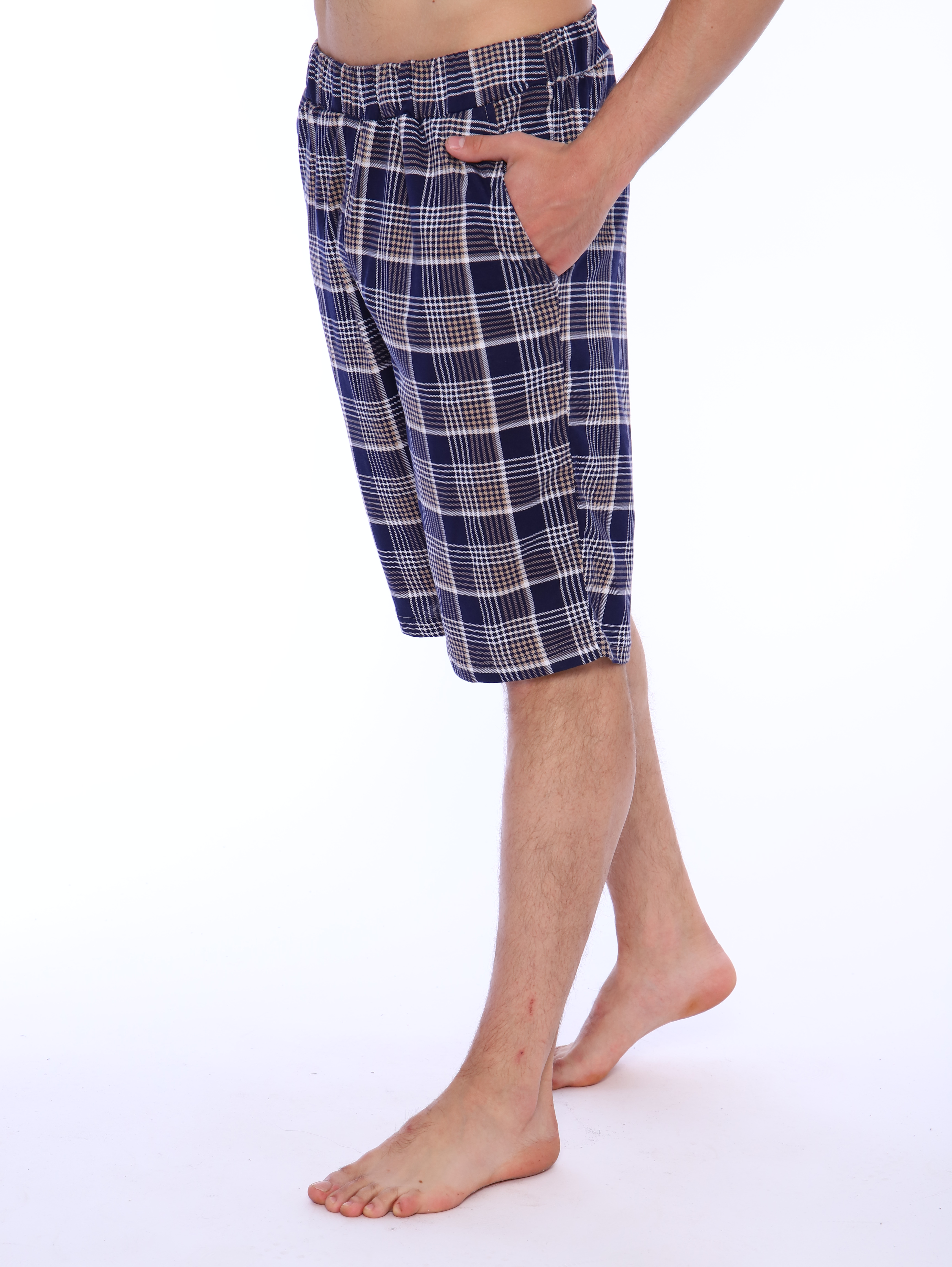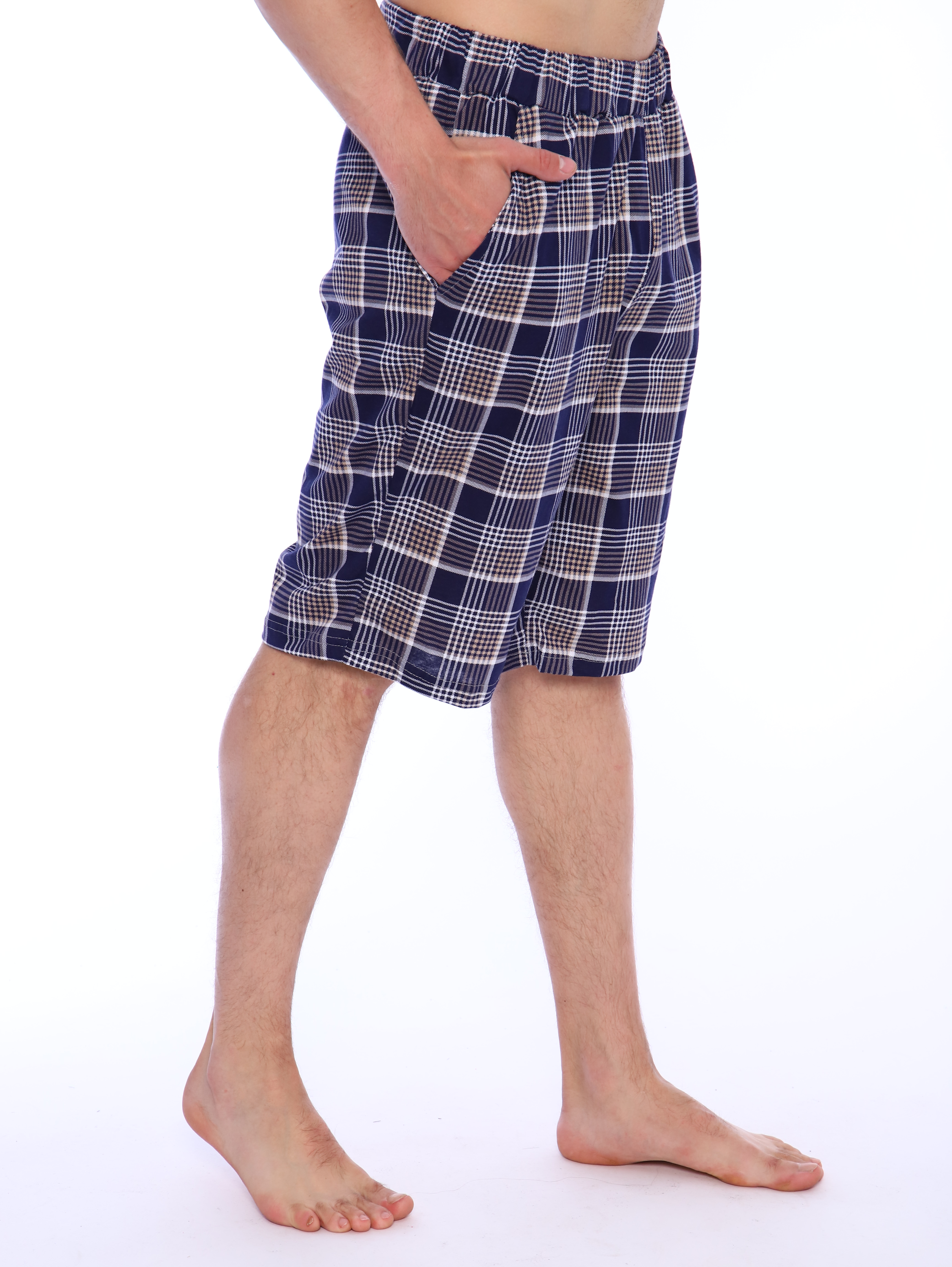 Мужские хлопковые домашние шорты с карманами по бокам.