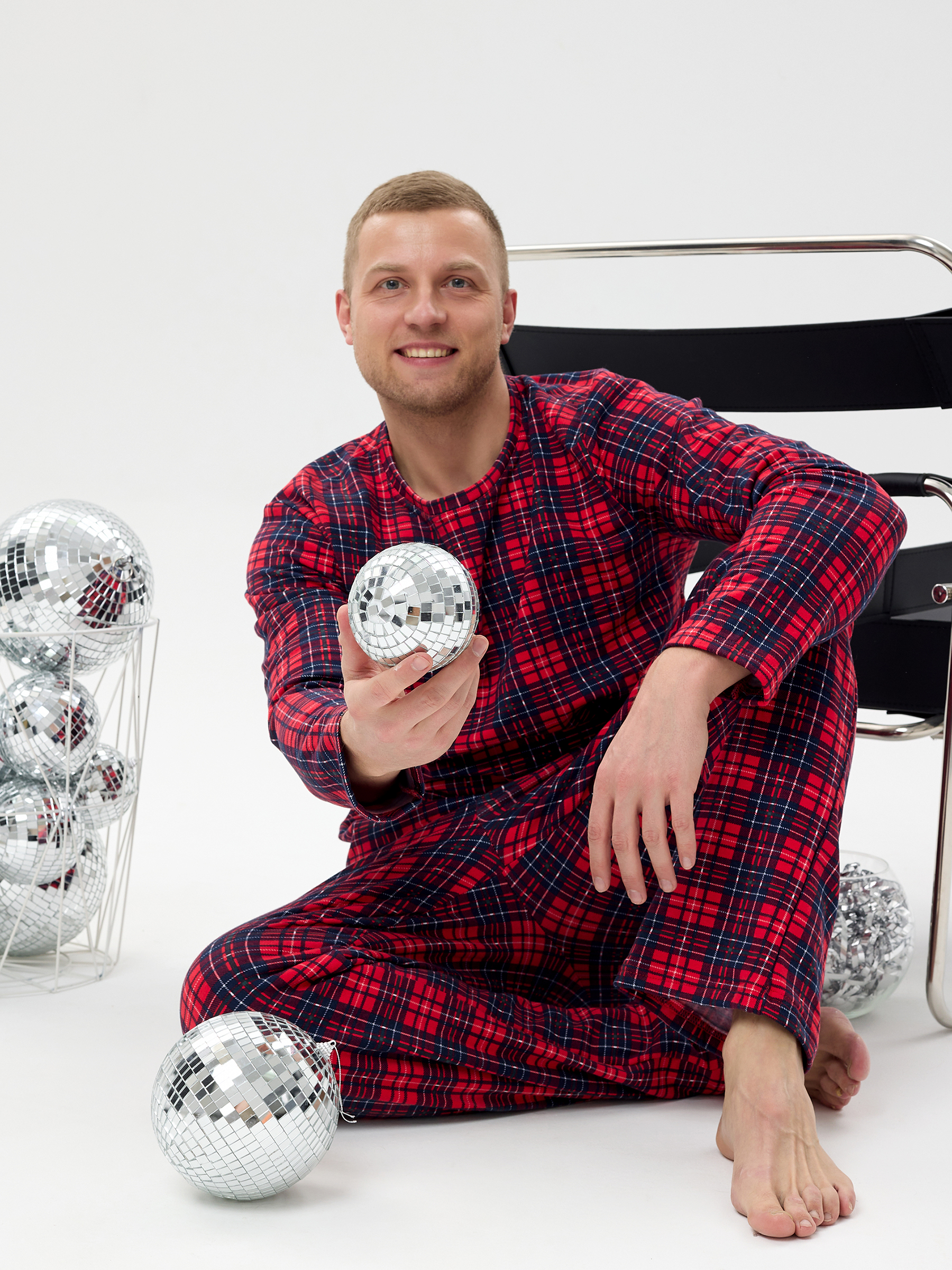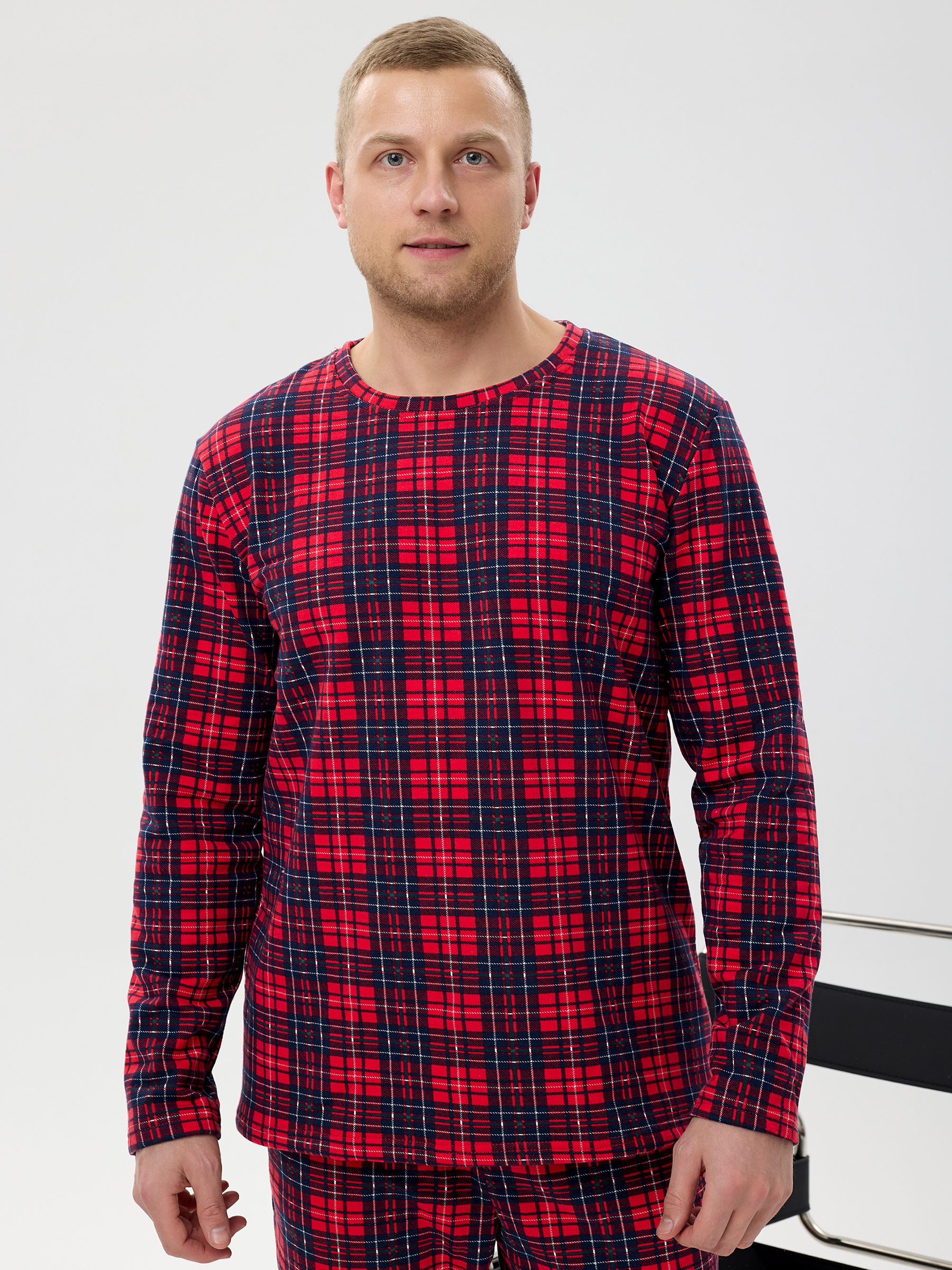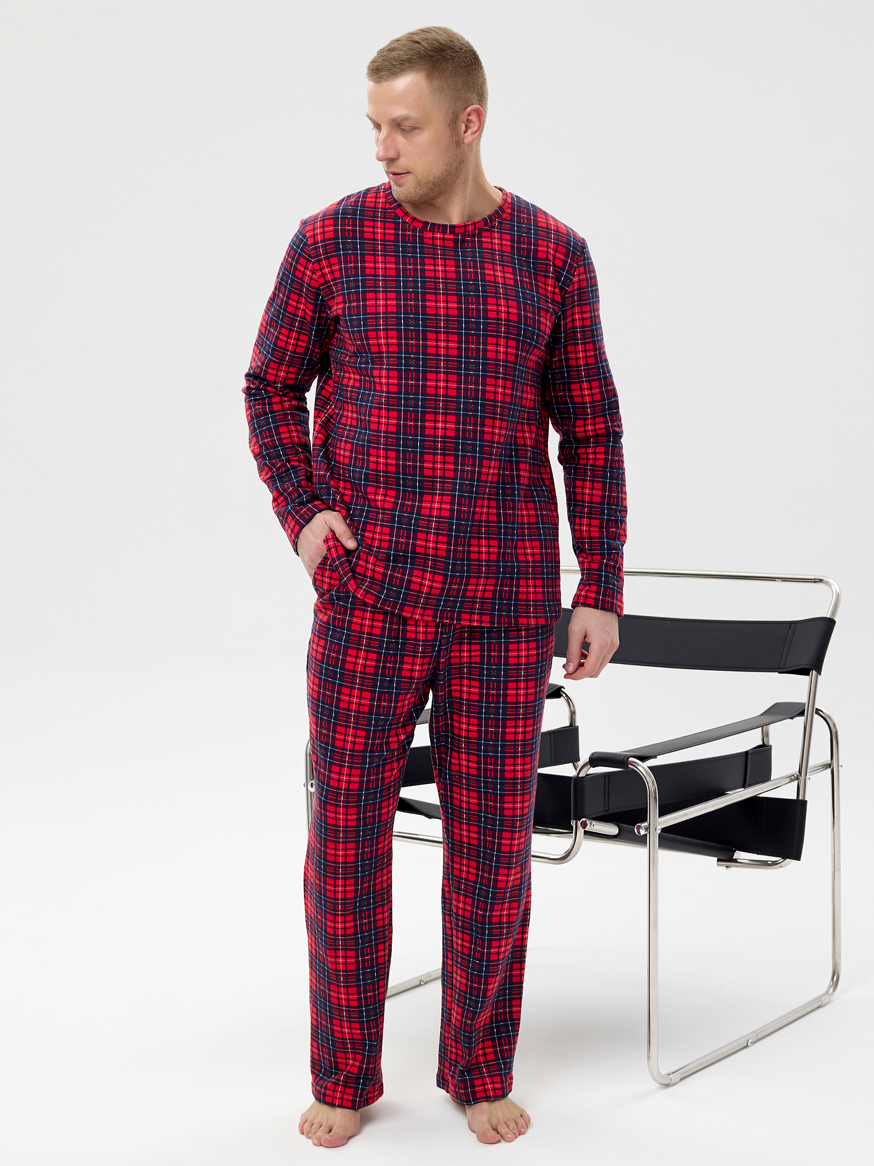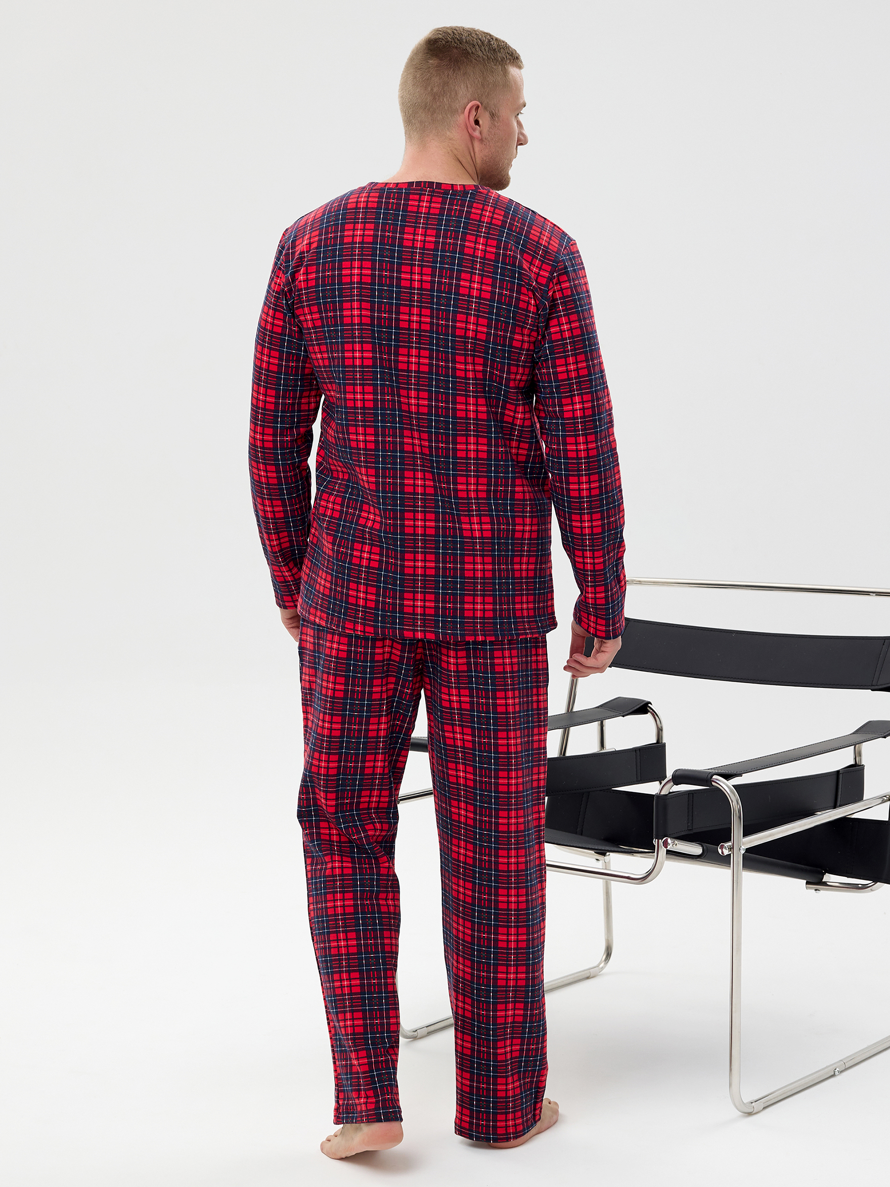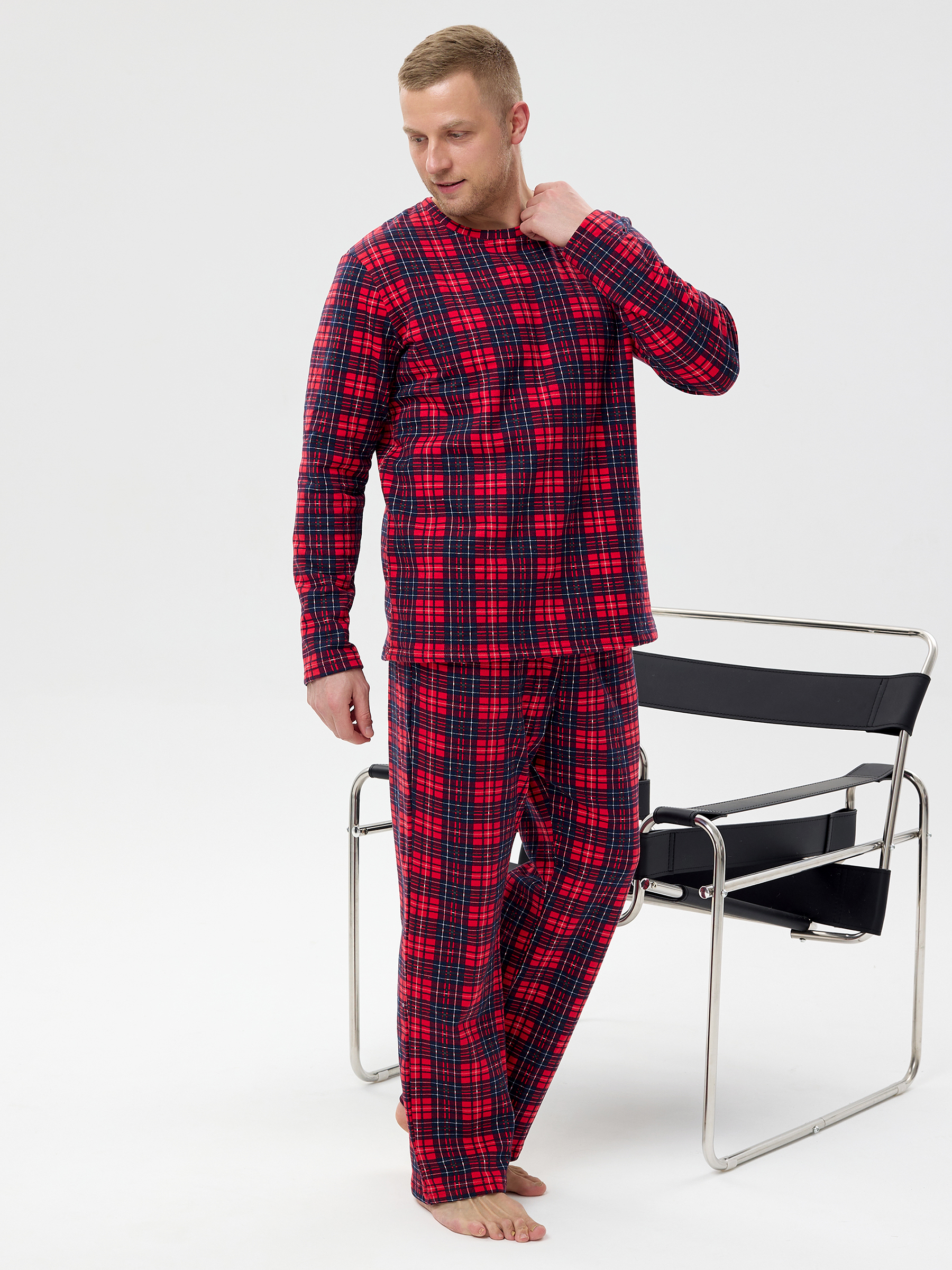 Пижама мужская из футера с начёсом Клетка