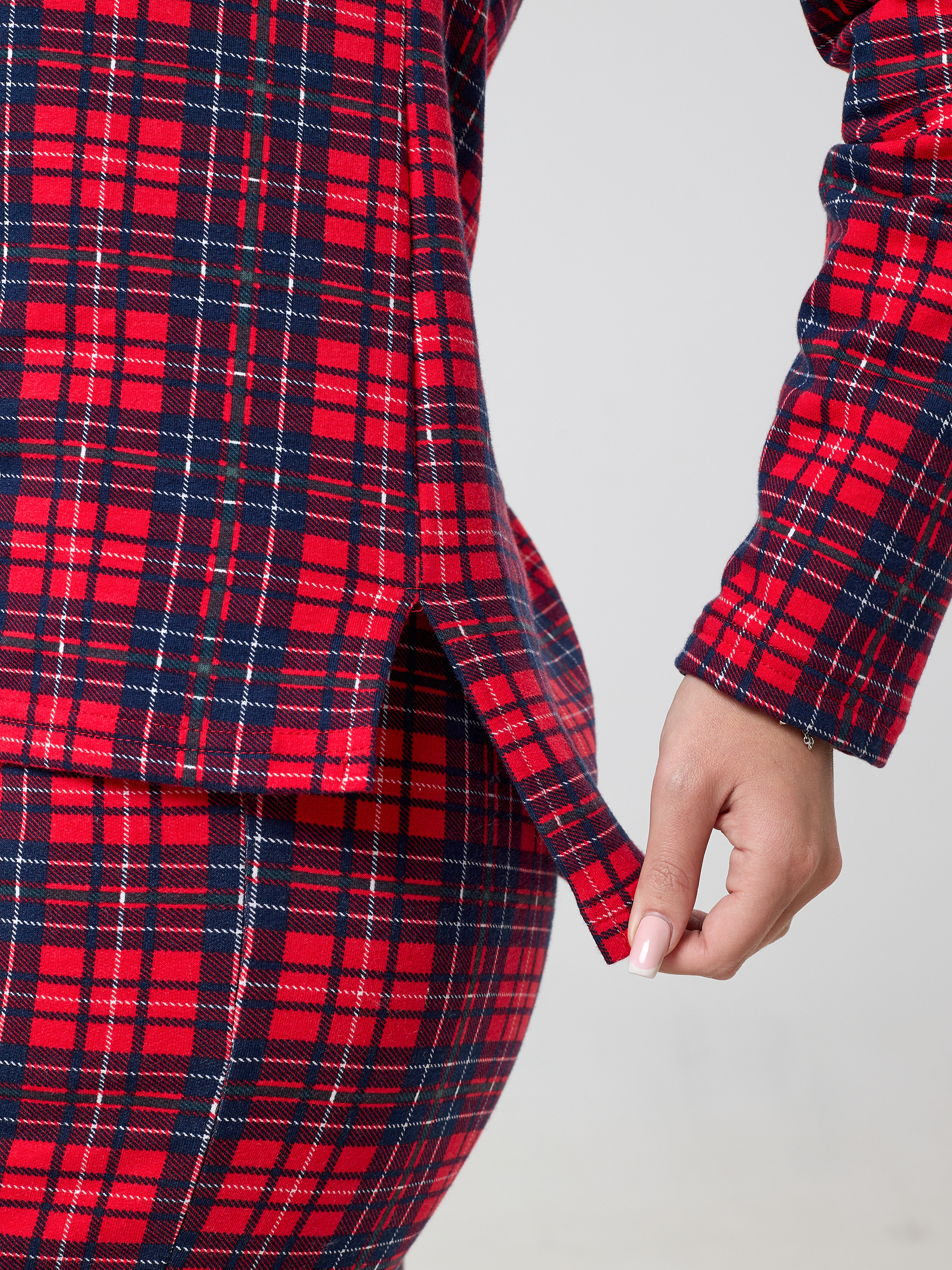 Зимняя пижама выполнена из максимально мягкого и уютного материала футер двухнитка с начесом, который обеспечивает ощущение комфорта и невероятной мягкости на ощупь.