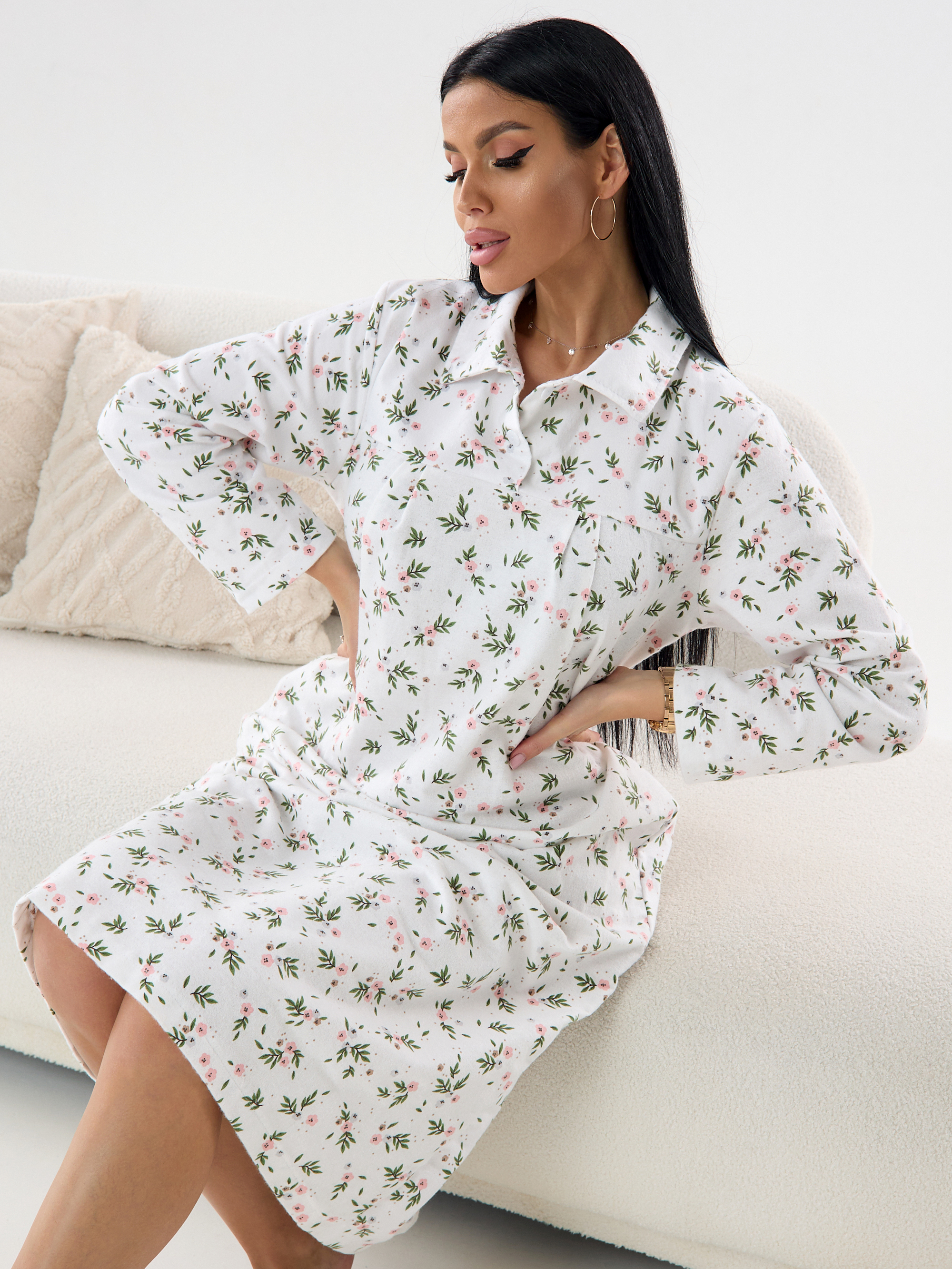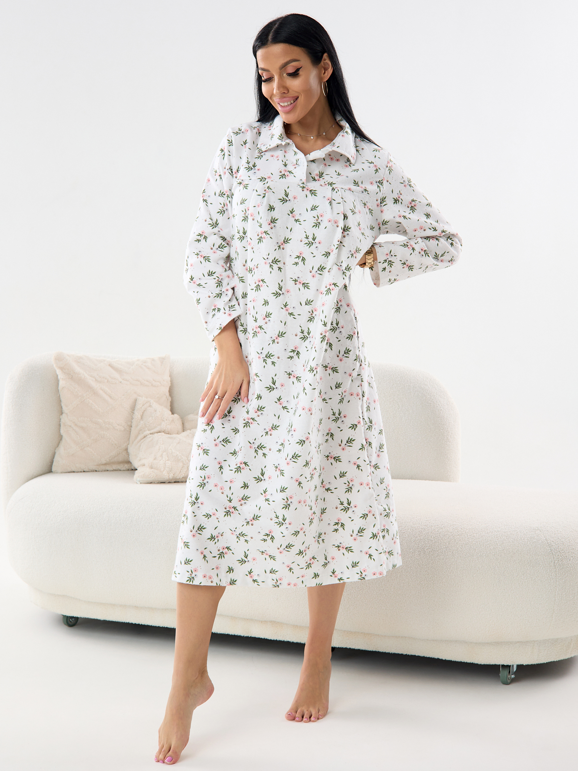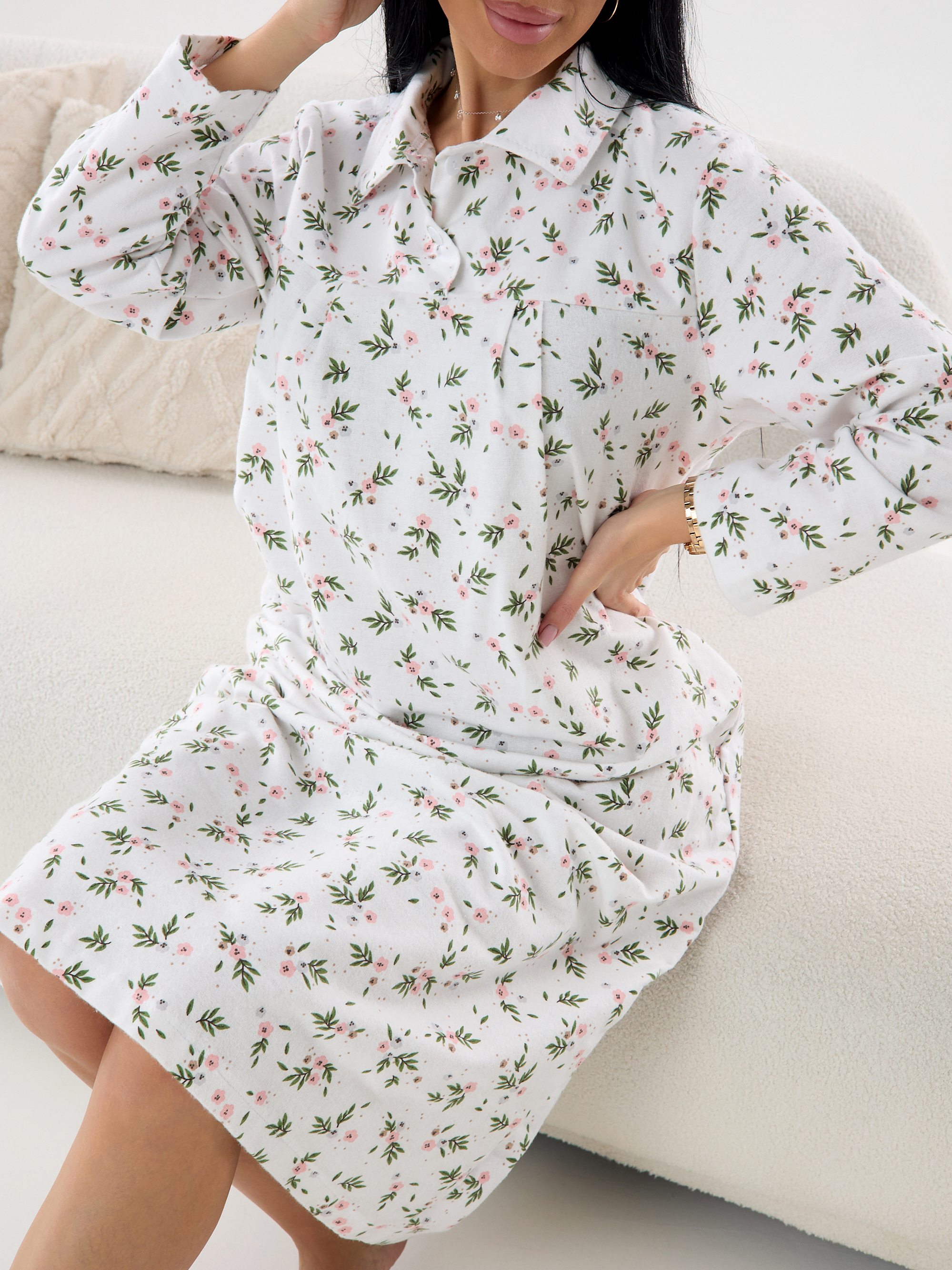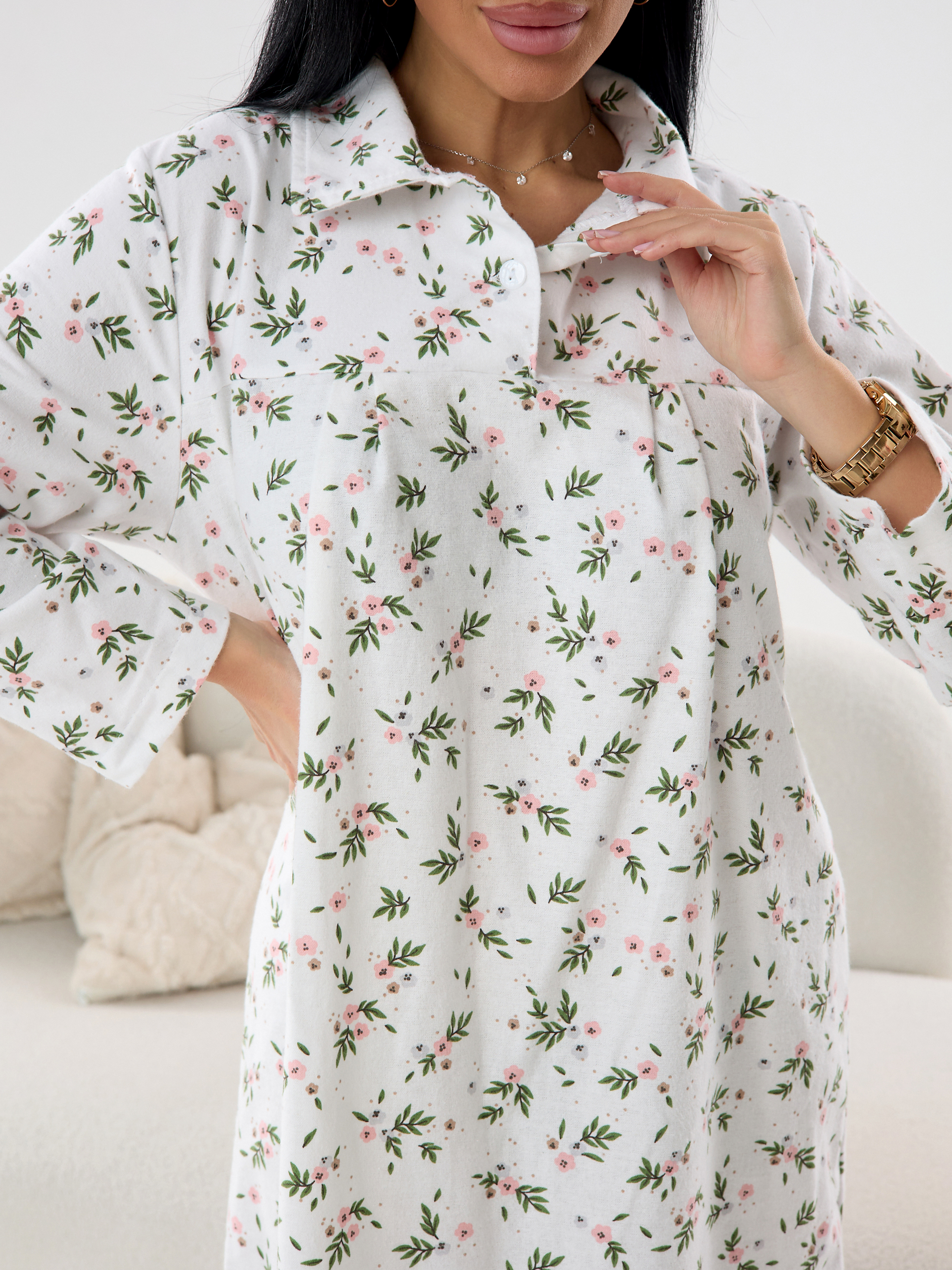 Ночная сорочка женская из фланели Цветы
